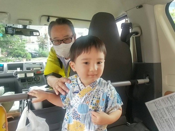 運転手の和田さんも、お祭りの半被を着てお迎えです🚌