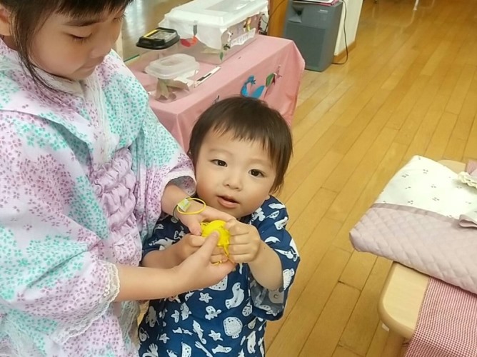 ホールで遊んで待っていた、たまご&ひよこ組さん🥚🐤