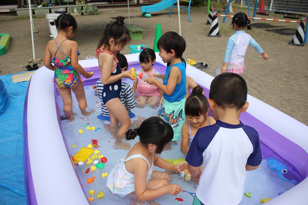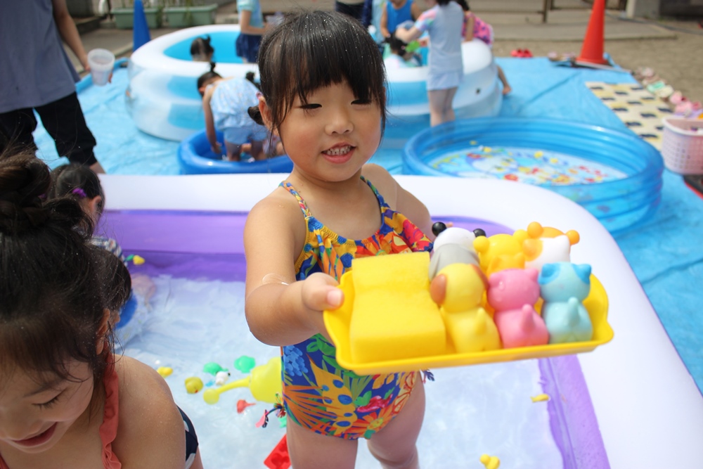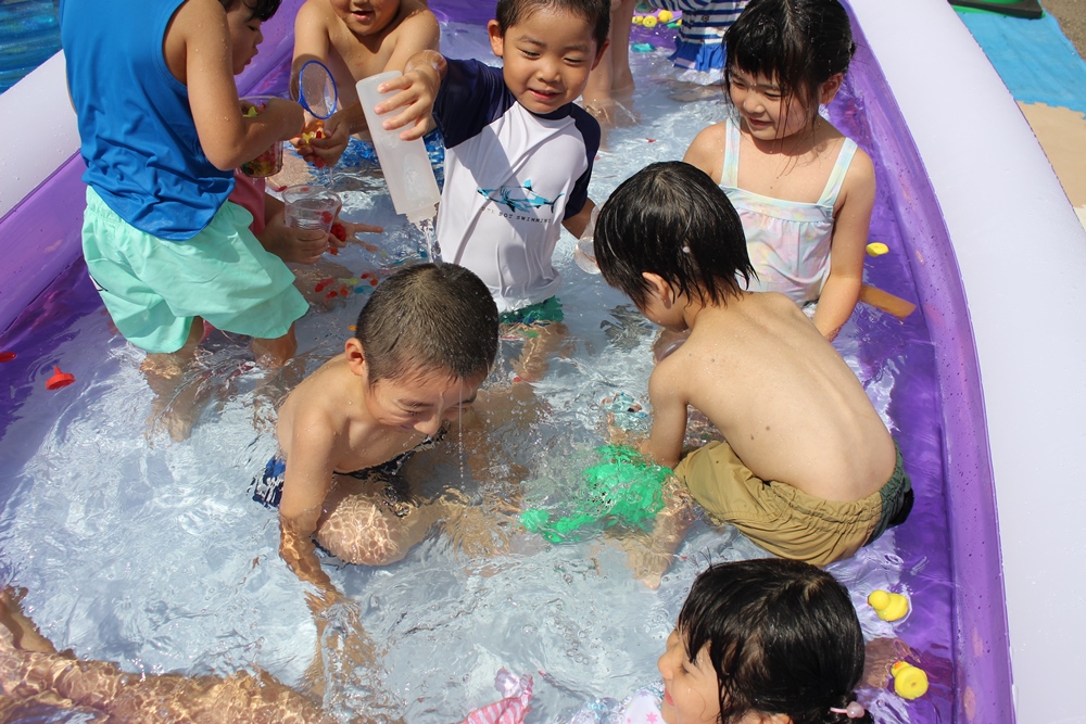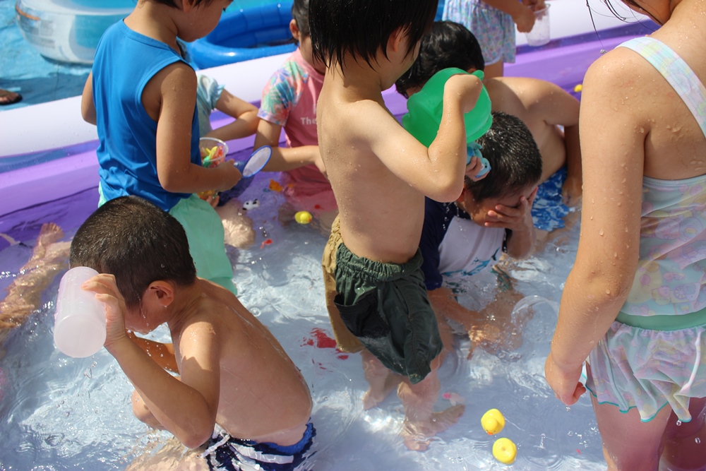 お水を掛け合ったり、水にもぐったり