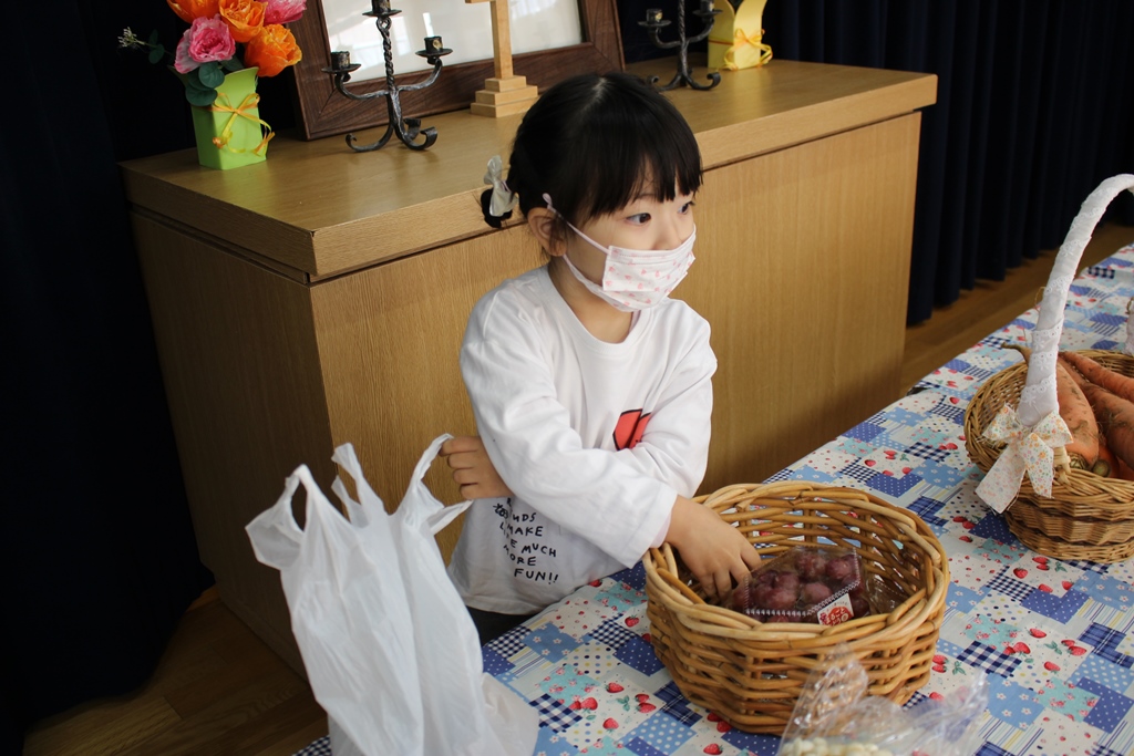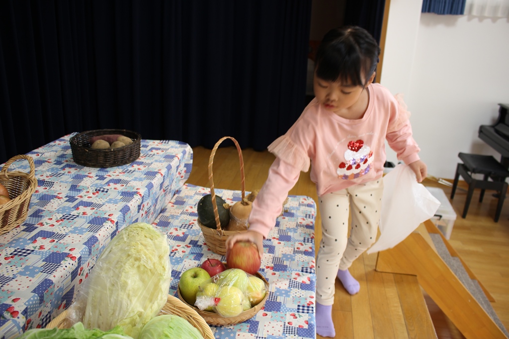 持ちよっていただいたお野菜・果物に感謝して