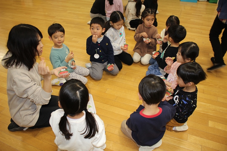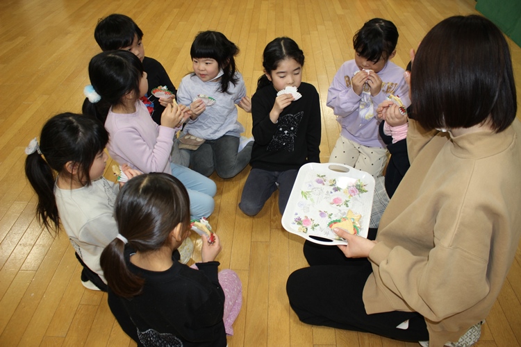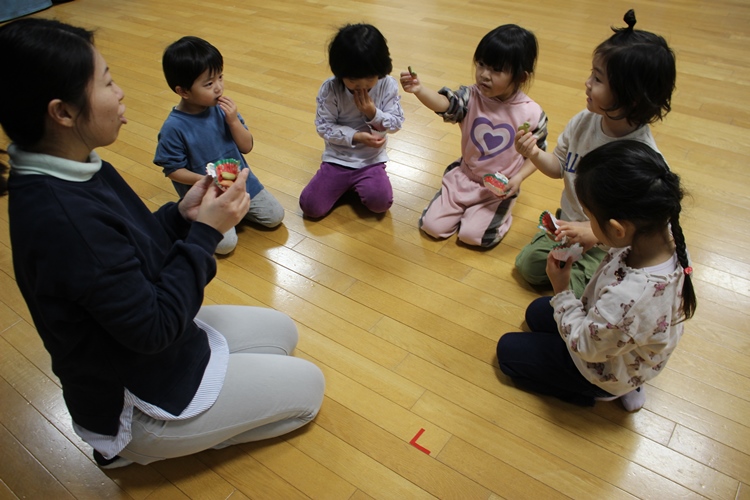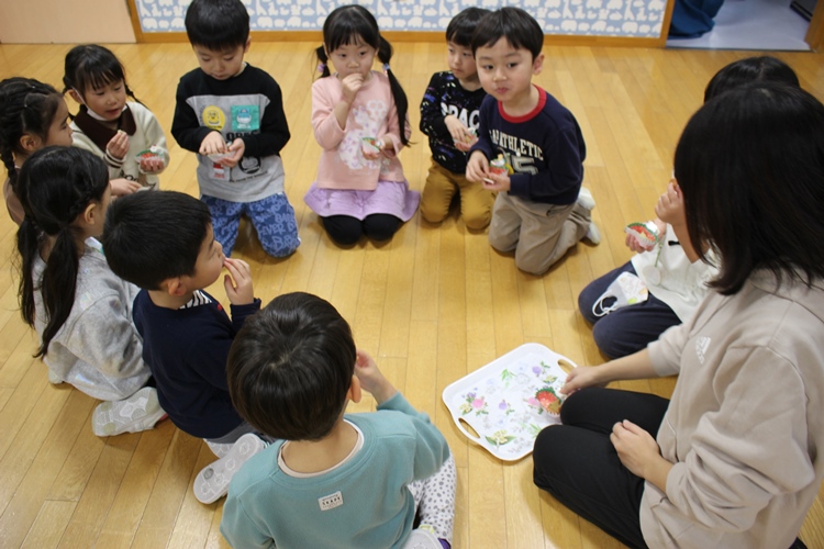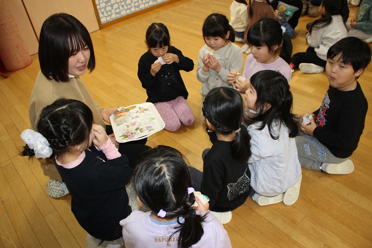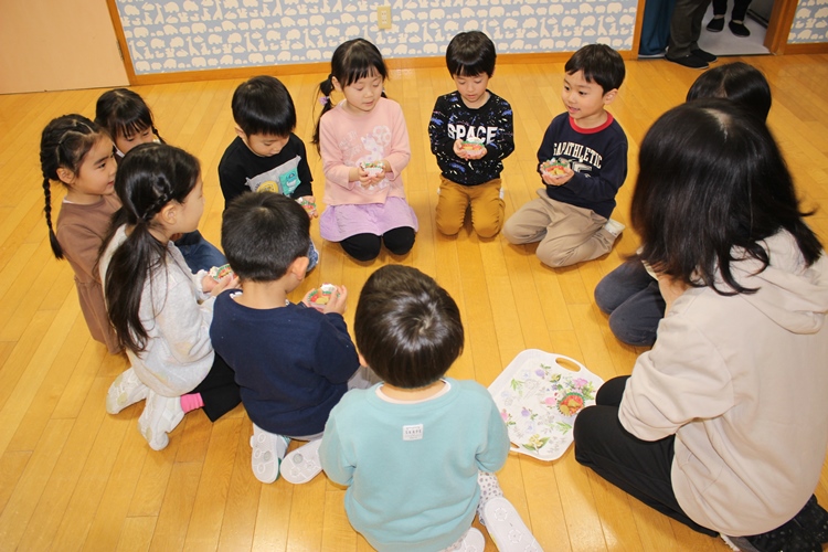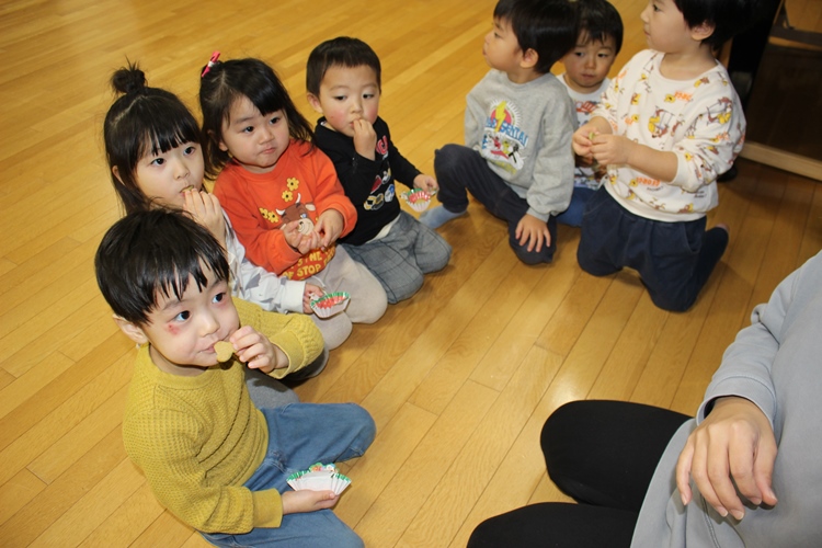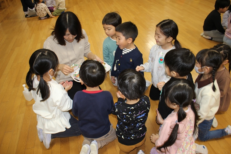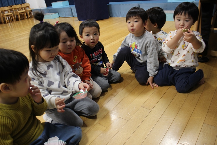 クラスの先生から明日のお話を聞いて、みんなでお菓子をいただきました💖