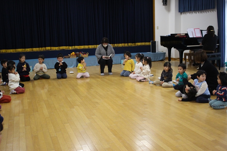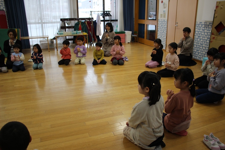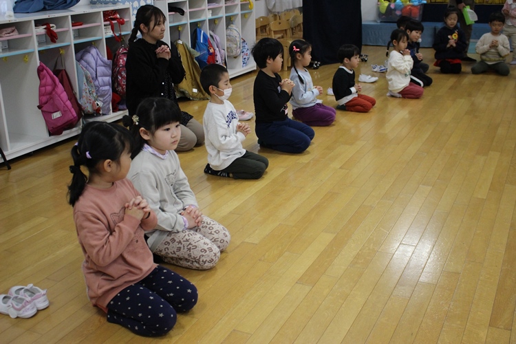 園長先生のお話を聞いて、お祈りをしましょう⛪