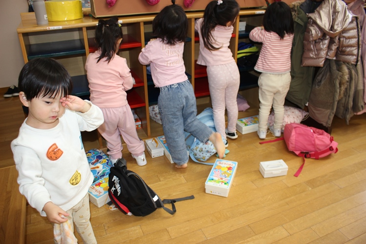 みんなでお祝いしたクリスマス祝会も終わり、今日は2学期の終園日です。