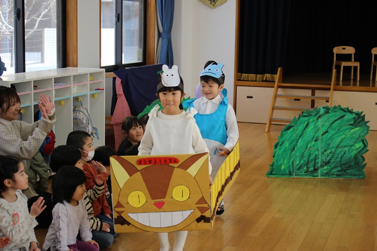 ねこバスに乗って、みんなの前を通りますよ~🚌