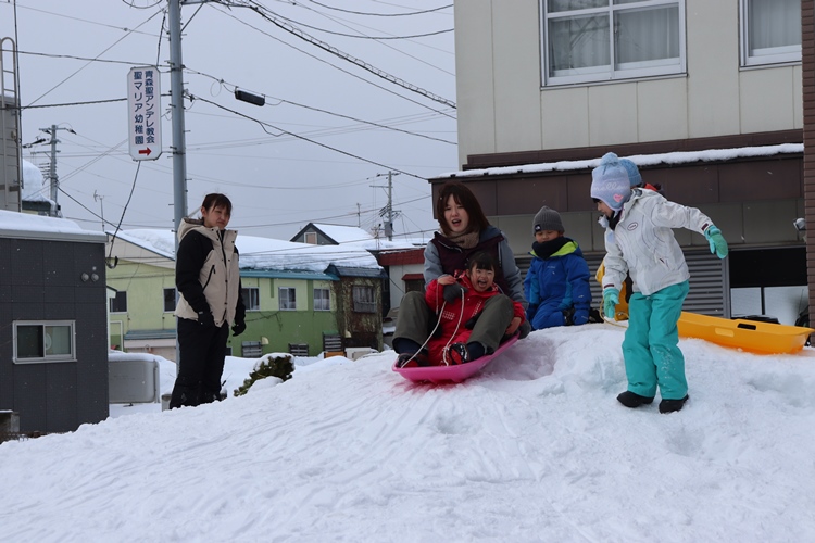 坂道を整えて、そり滑りも始まりました🛷✨