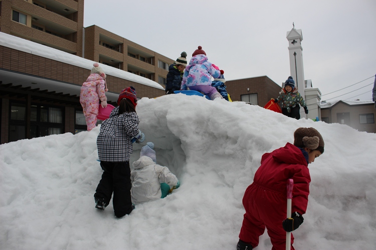 みんなで大きなかまくら作りに挑戦!💪