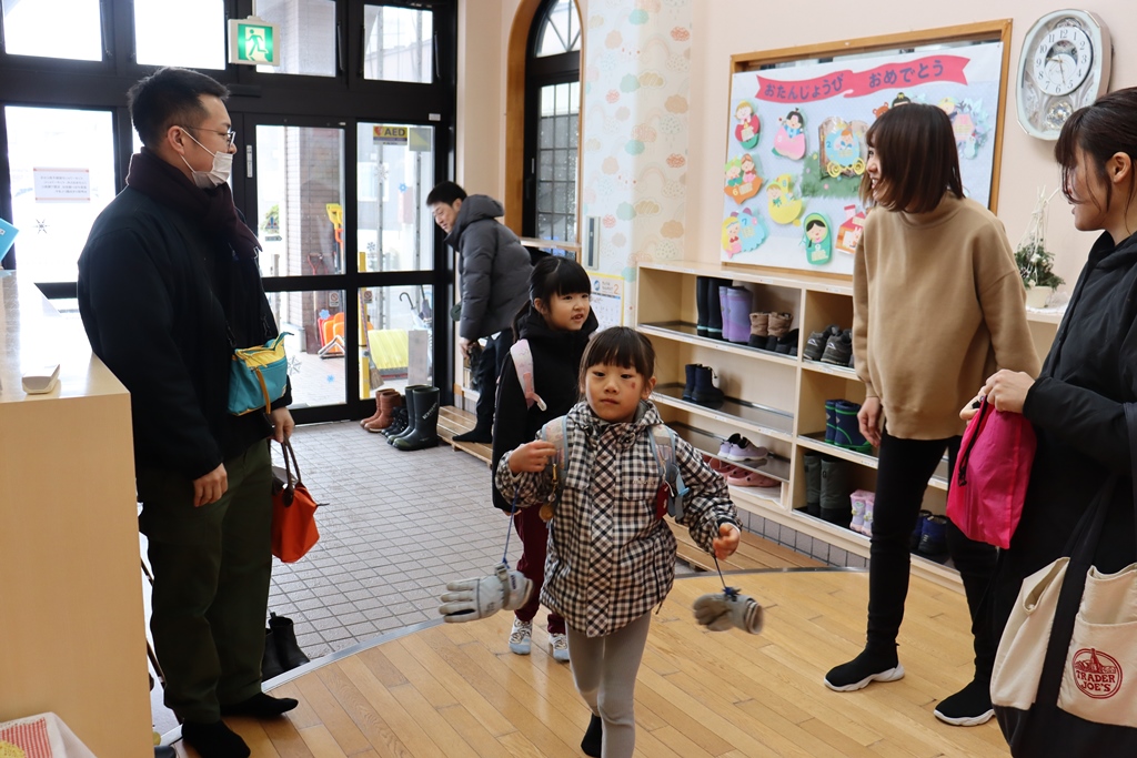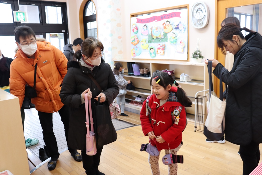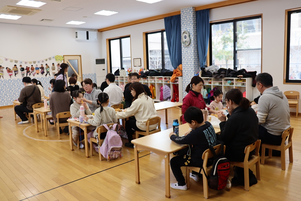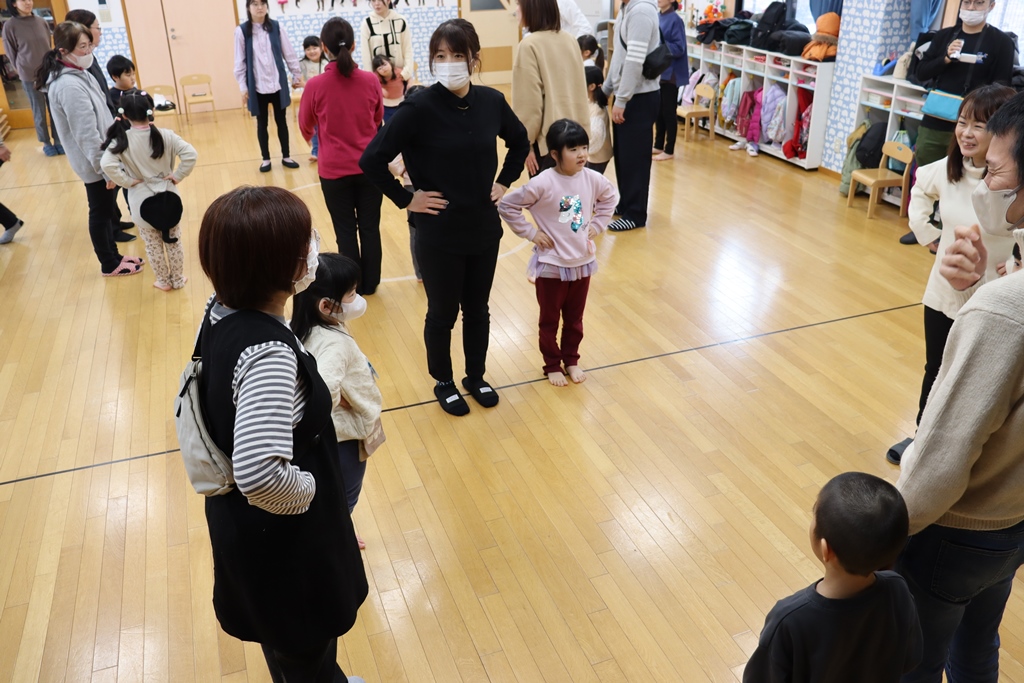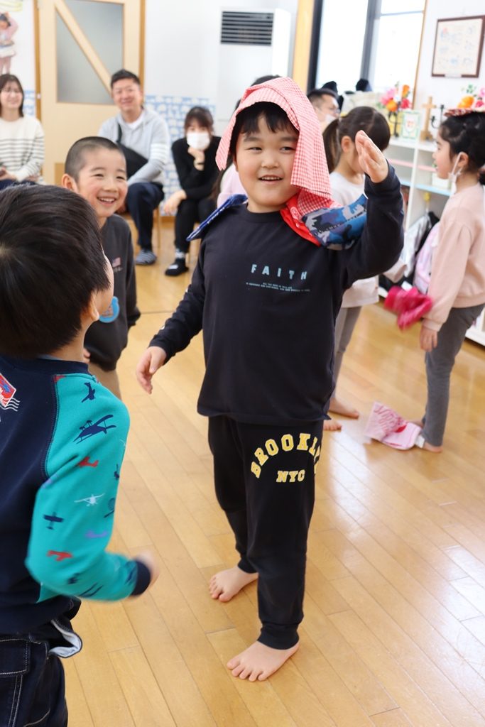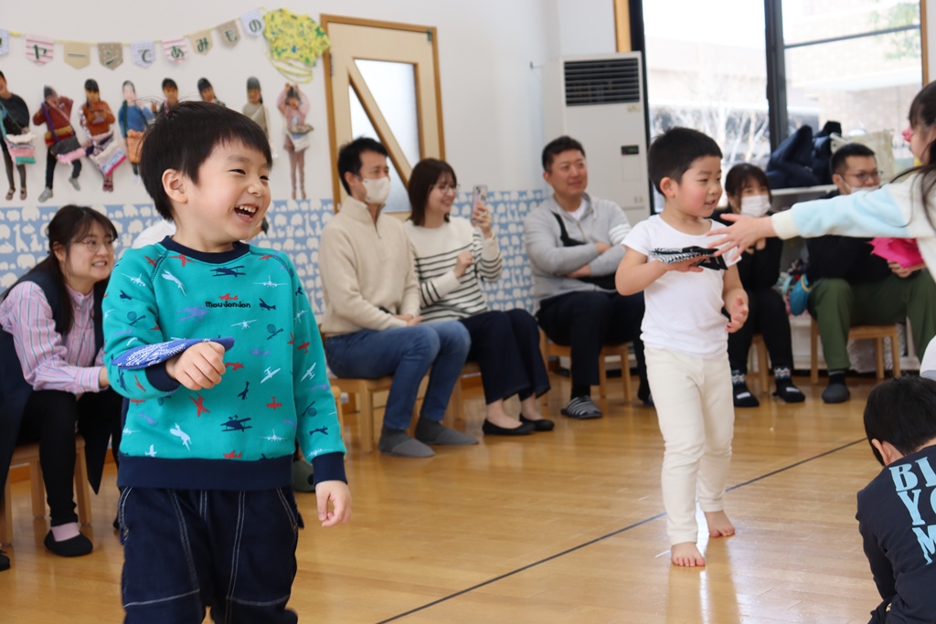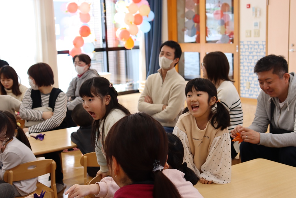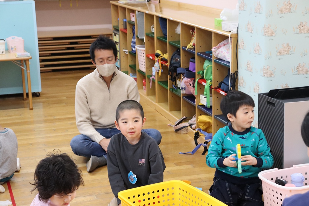 幼稚園最後の参観日、おひさまさんのおうちの方もにこにこですね😆