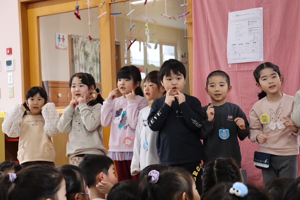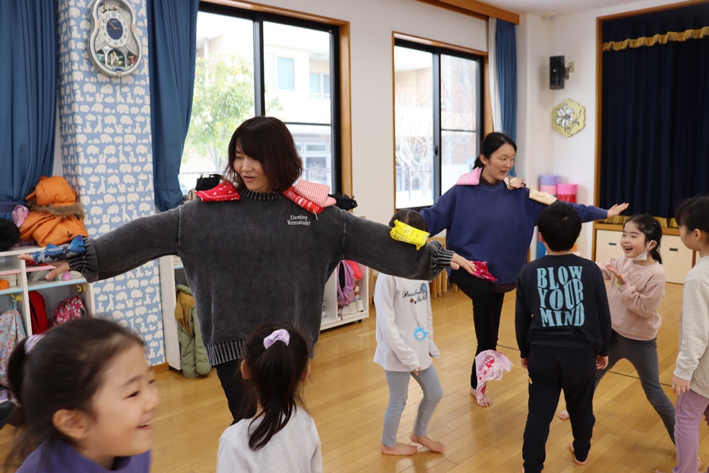 大きい組のおひさま・ちゅうりっぷ組のみんなで