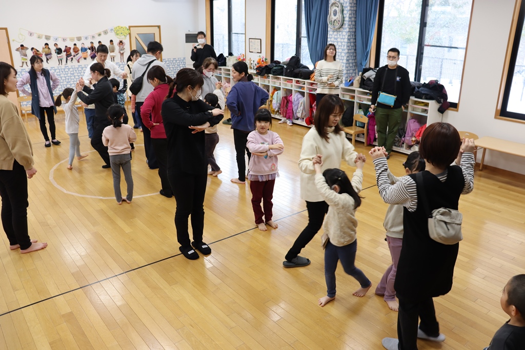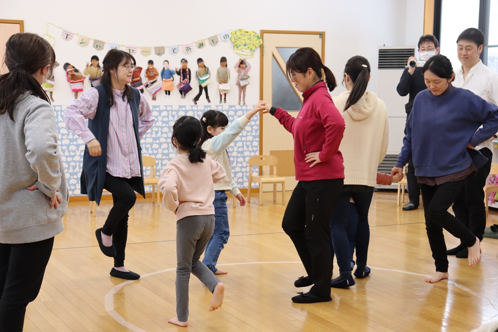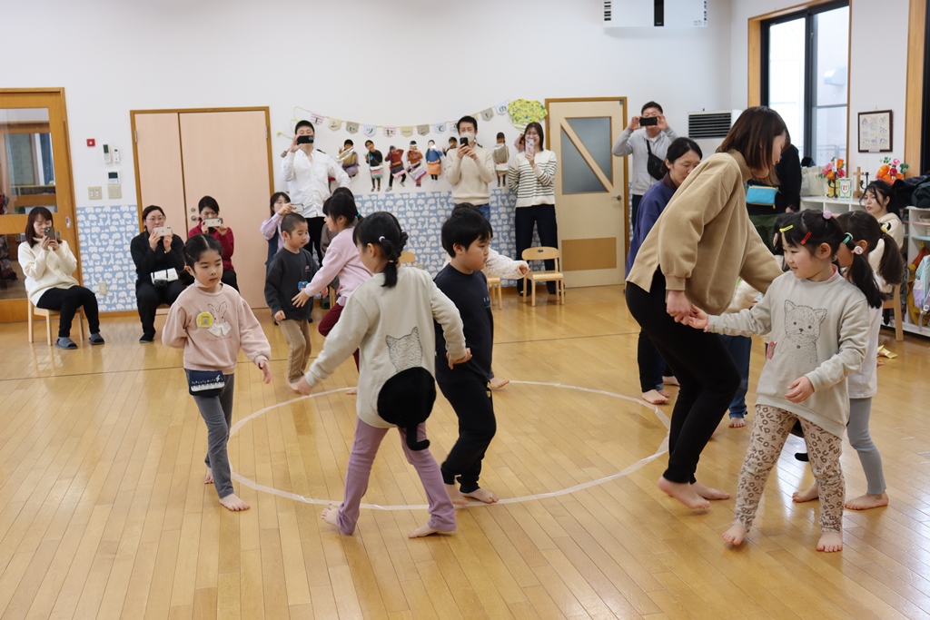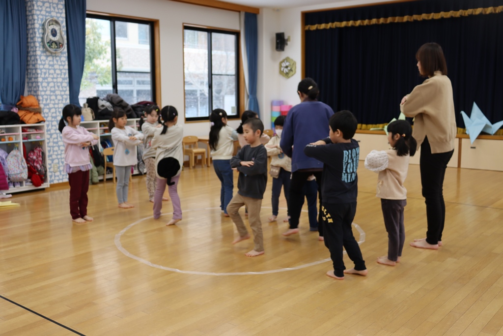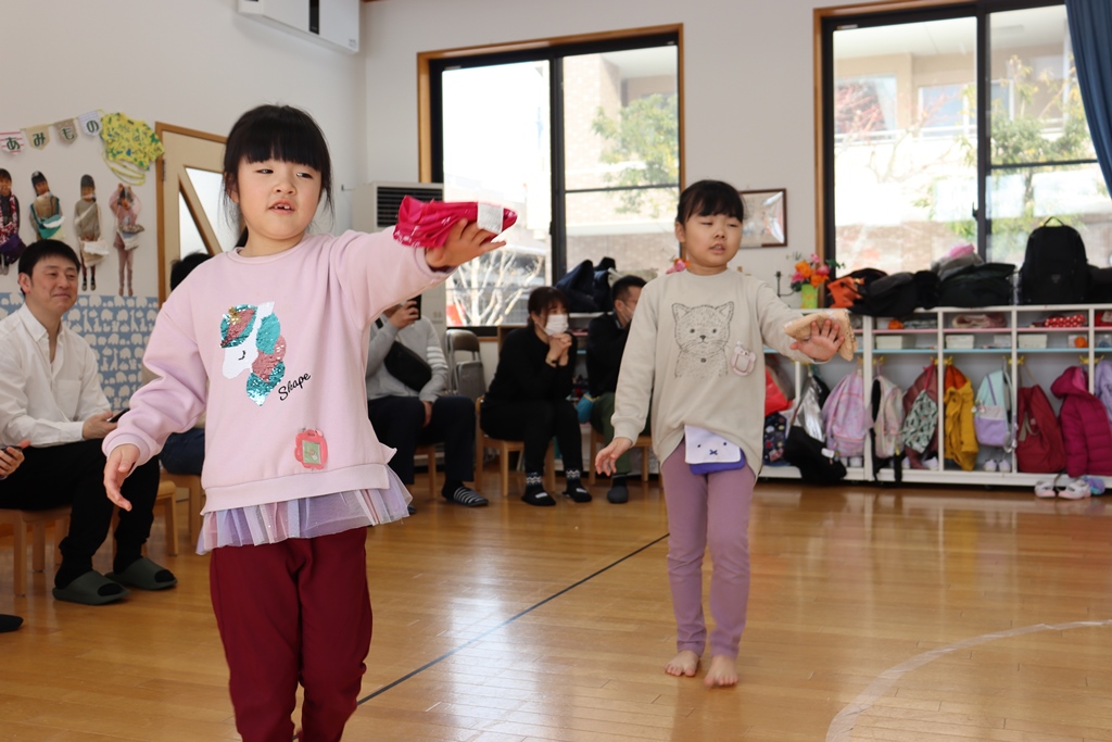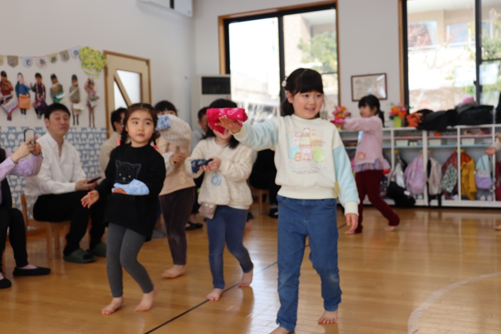 おひさま組が取り組んできた編み物に似た動きが取り入れられた難しいダンスですが
