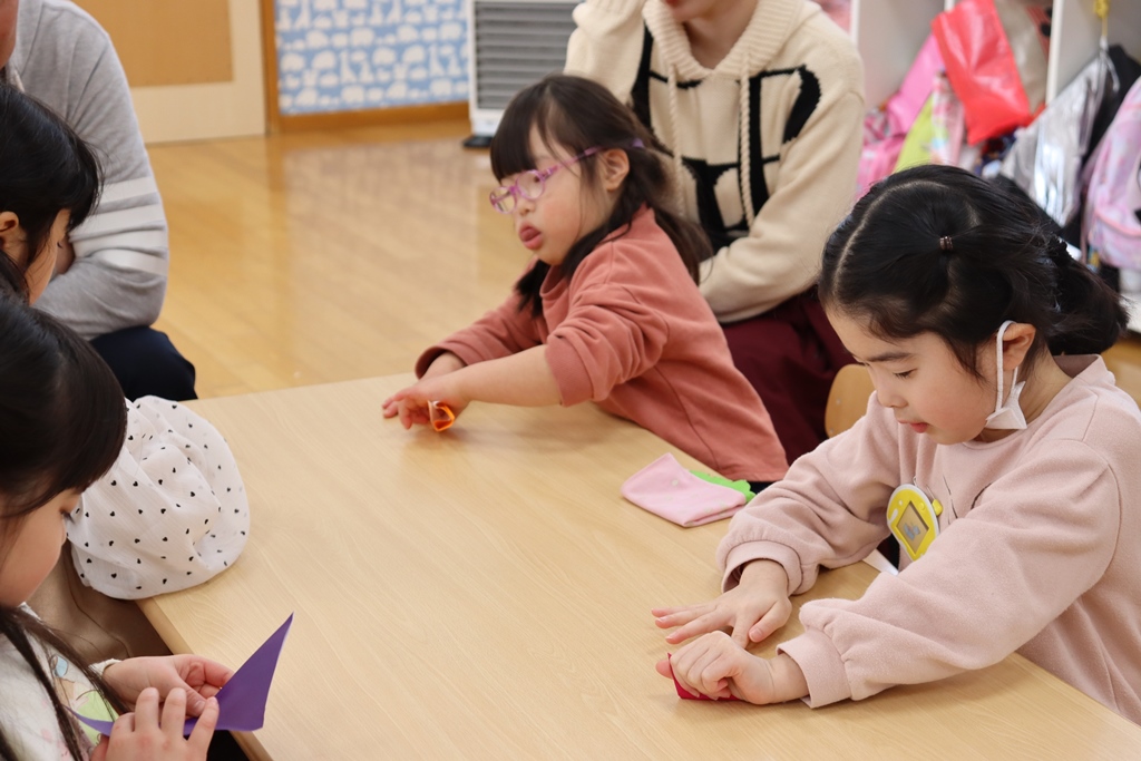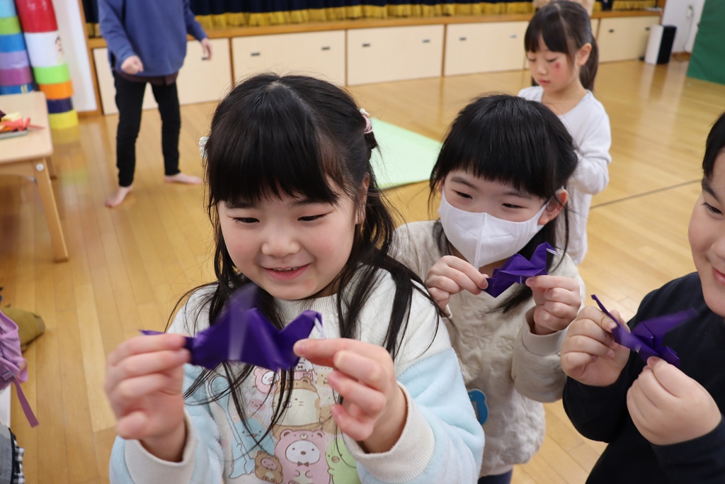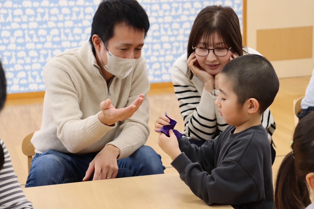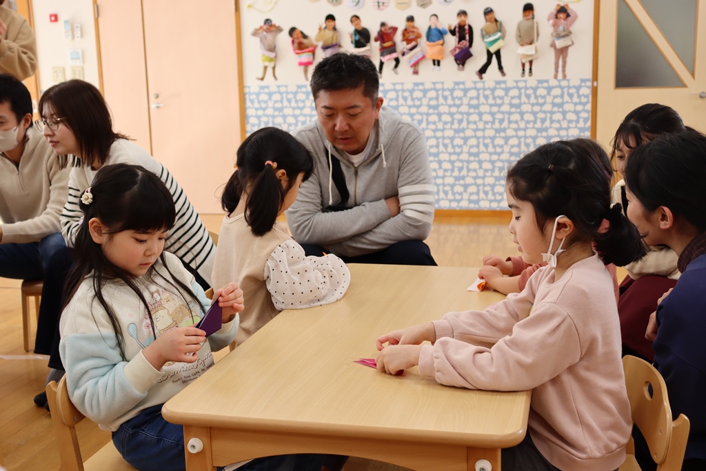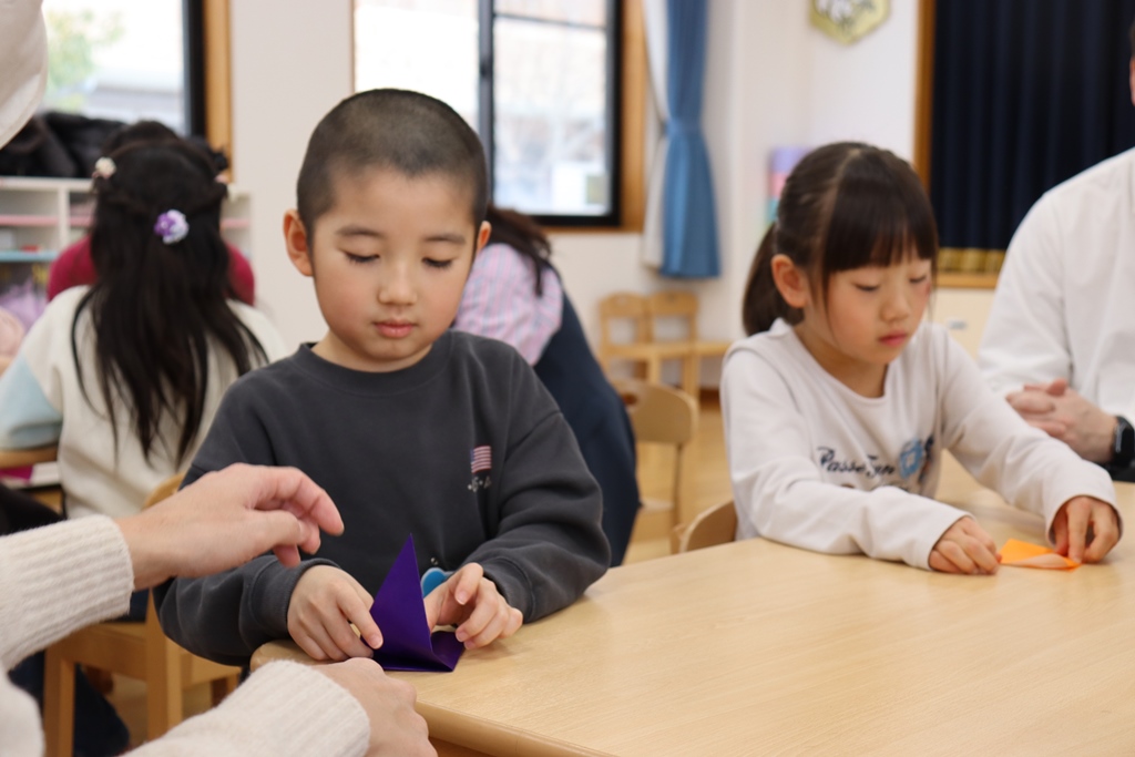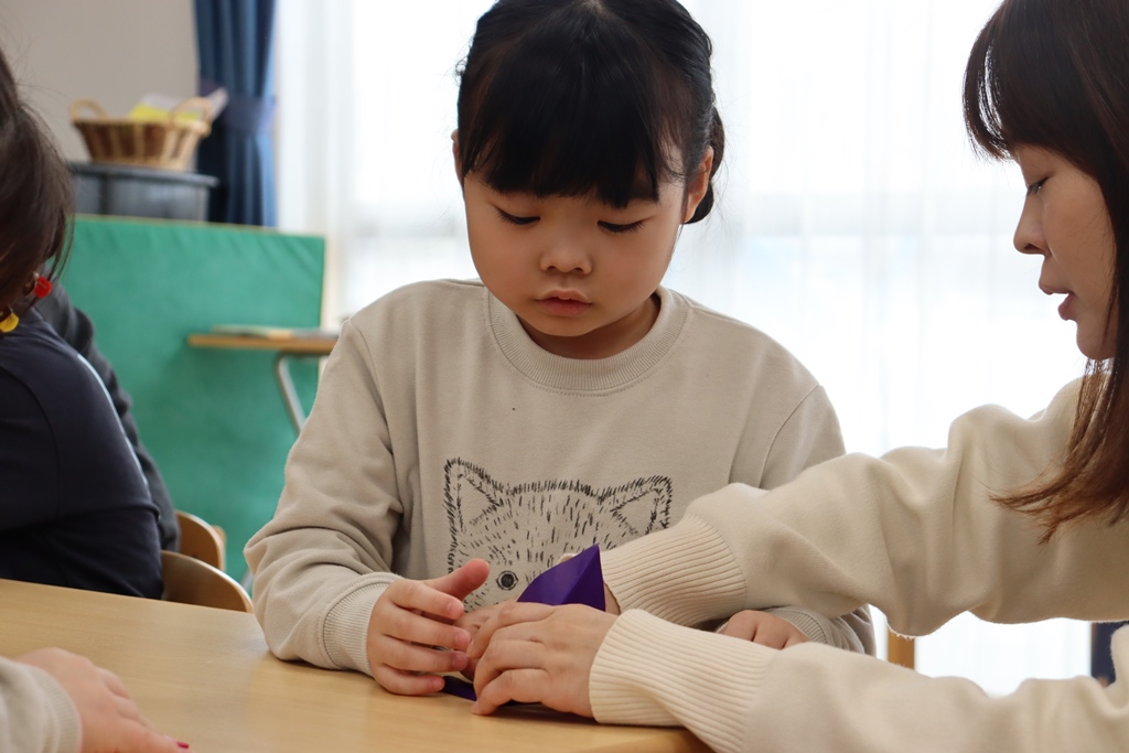 おひさま組が3学期取り組んでいる「おりがみ」を参観していただきました!