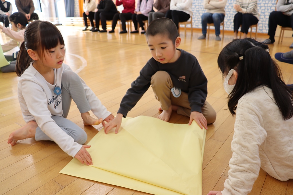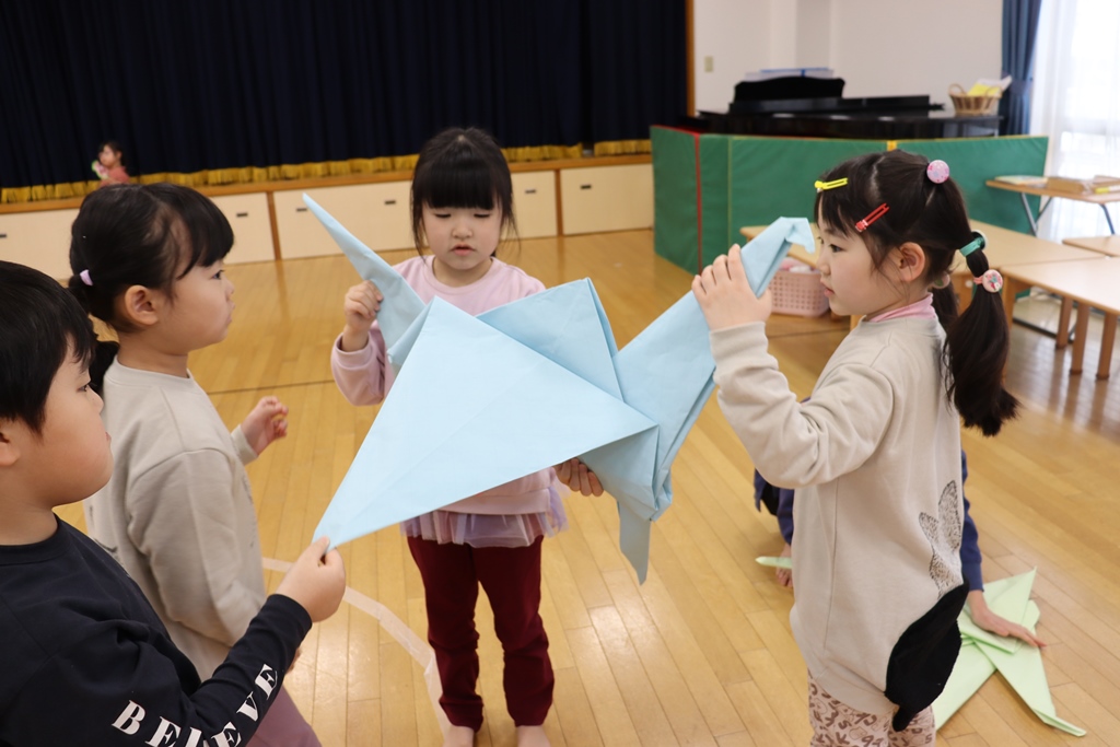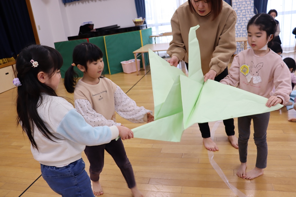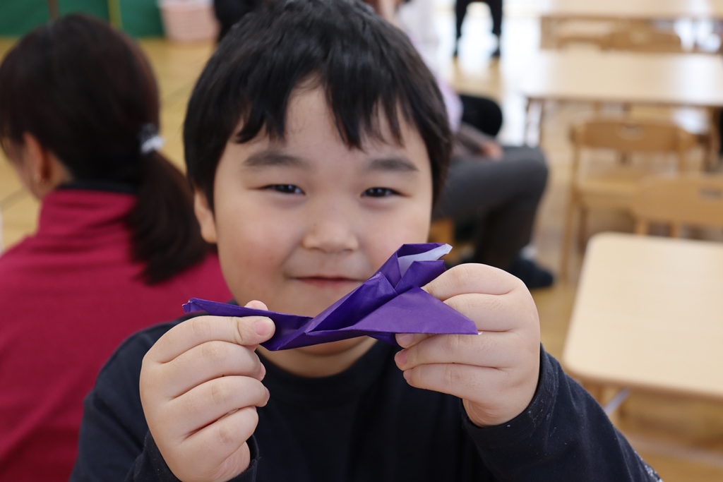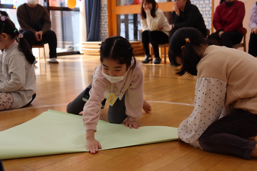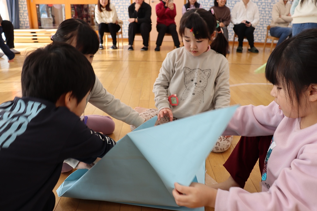 おひさま組が3学期取り組んでいる「おりがみ」を参観していただきました!