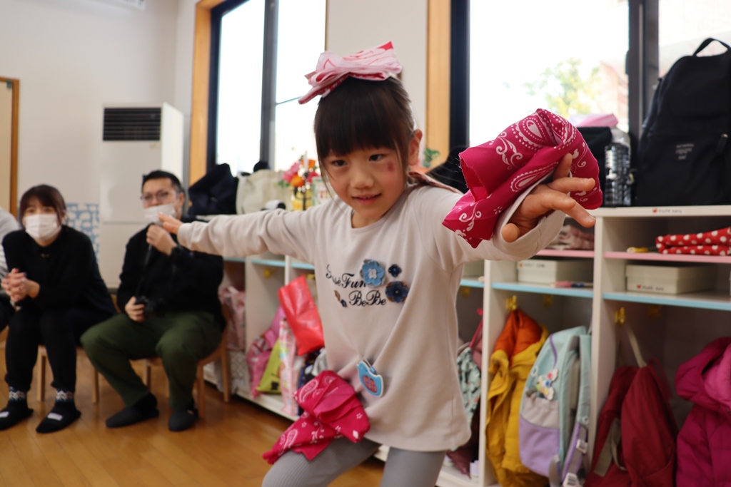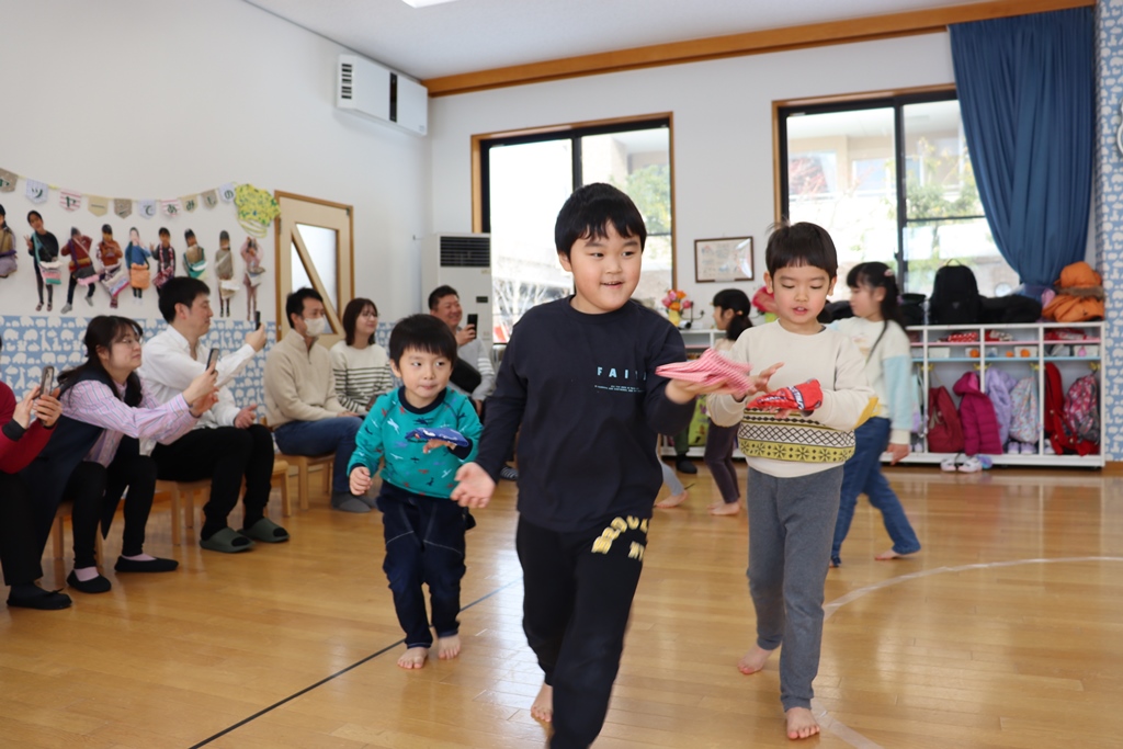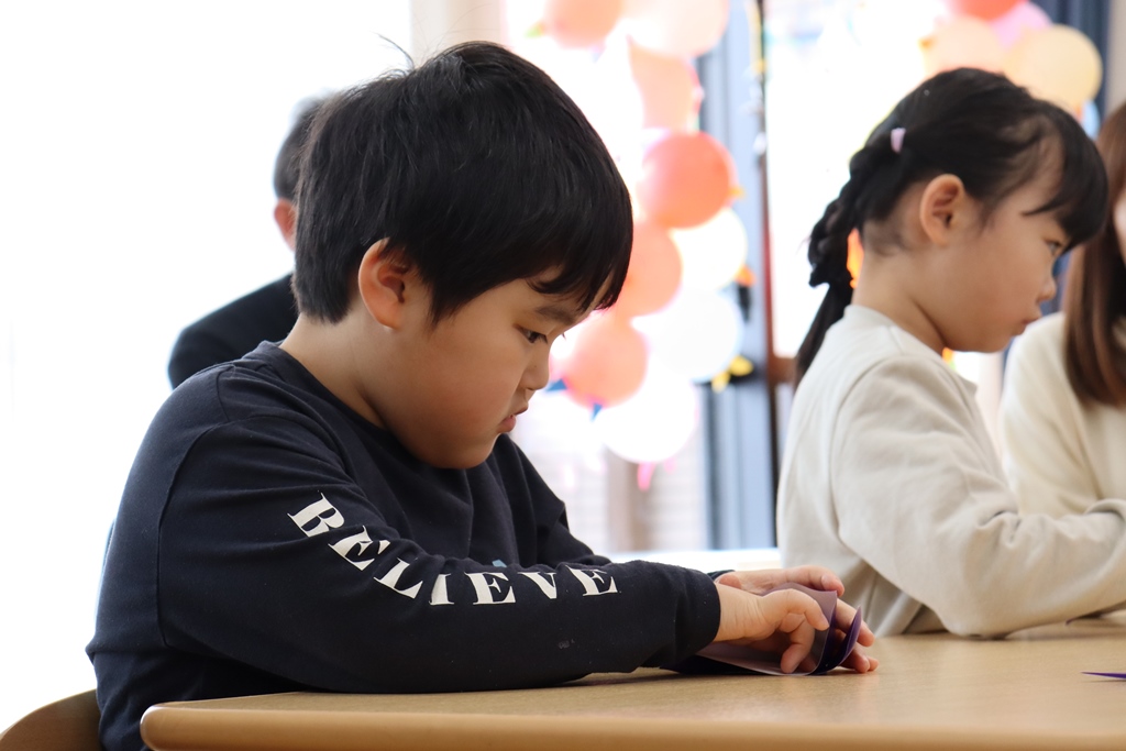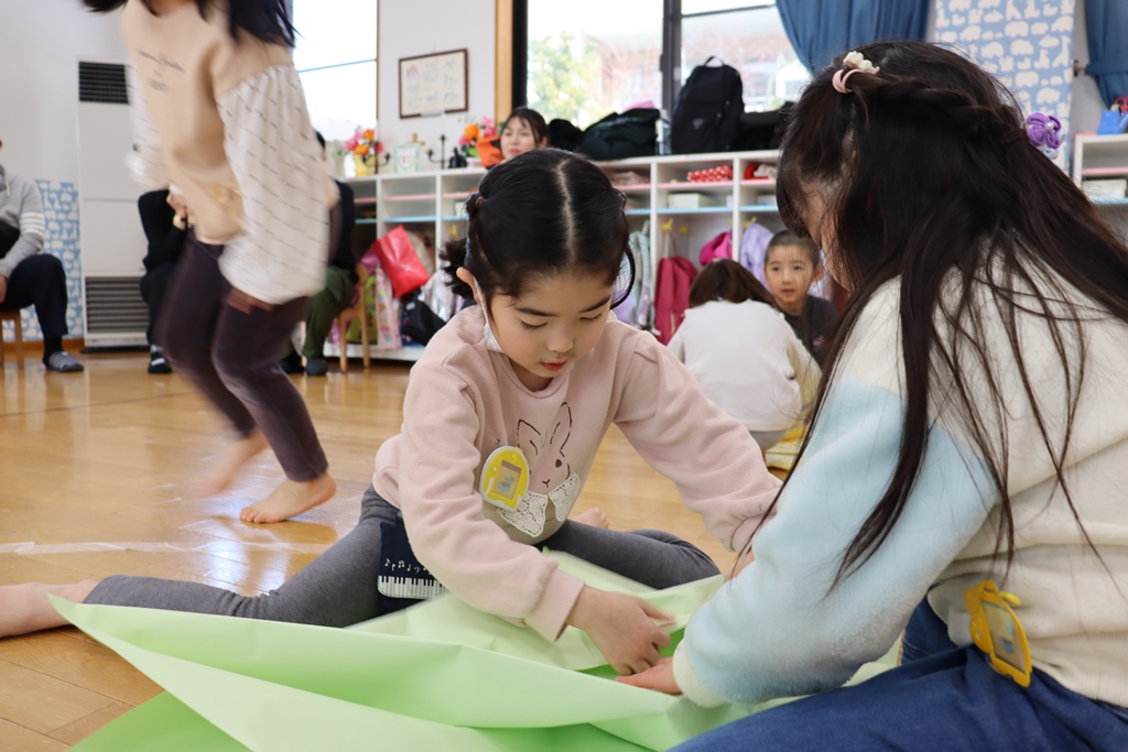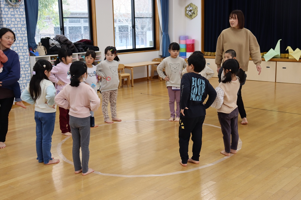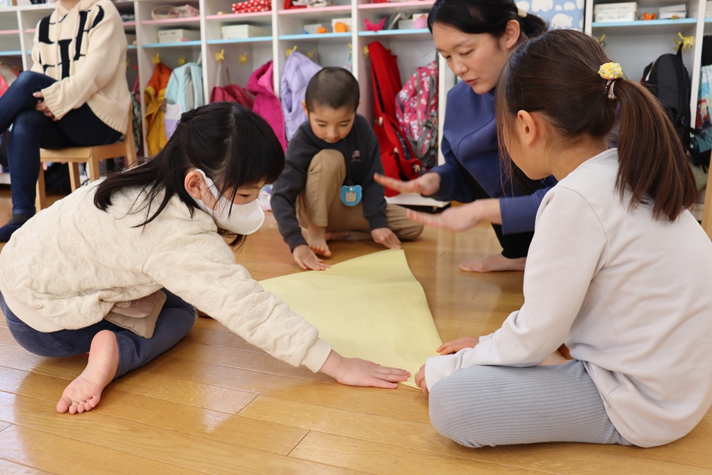 おひさま組が3学期取り組んでいる「おりがみ」を参観していただきました!