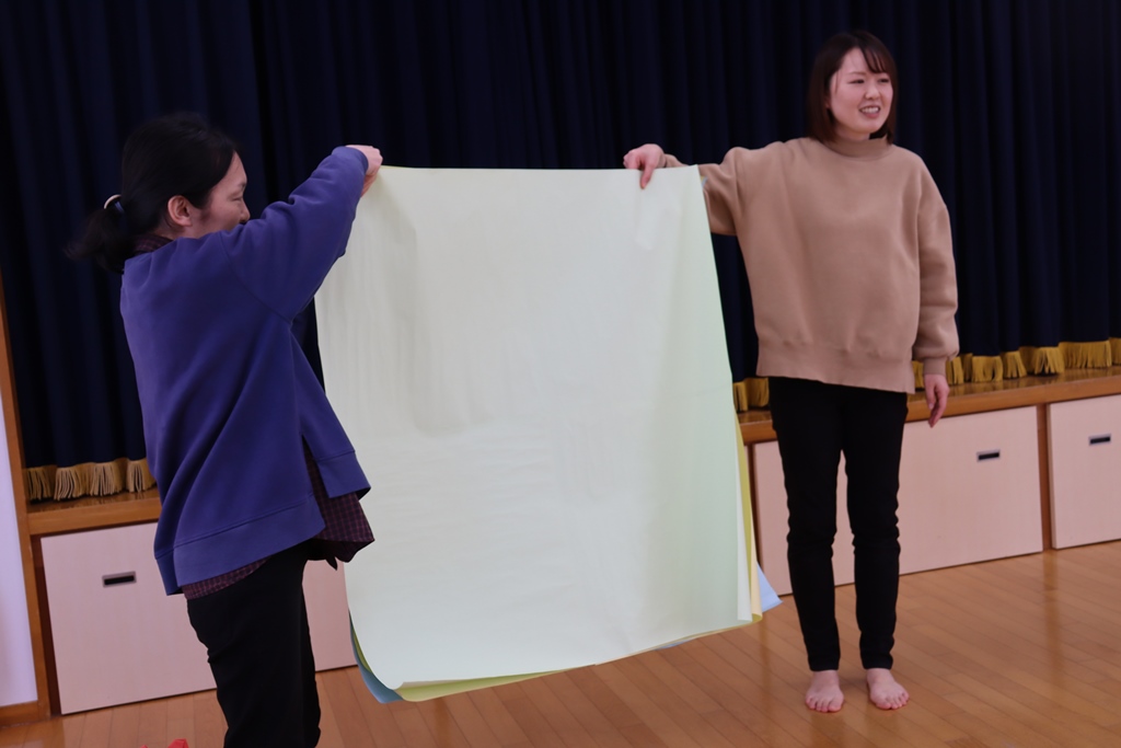 大きな紙なのでグループに分かれ、力を合わせて折ることにしました💪✨