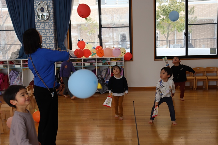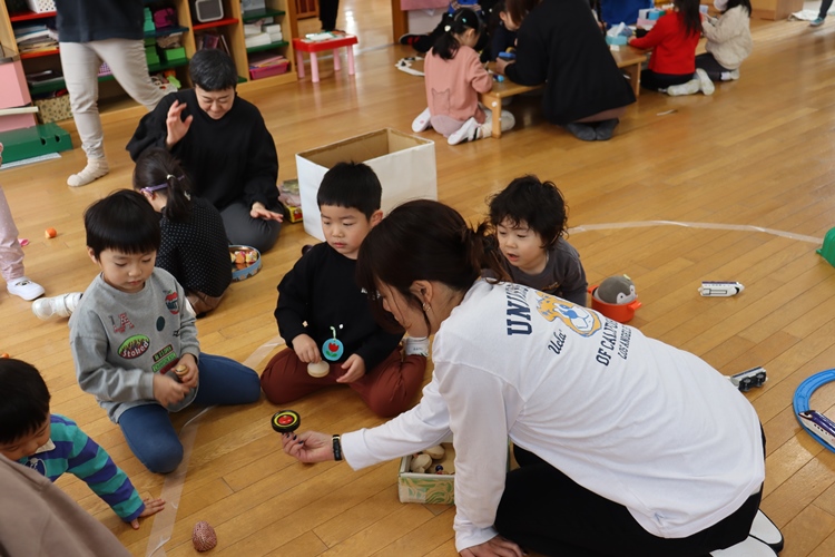こま回しや羽根つき(風船バージョン🎈)などお正月遊びも、おうちの方と一緒にやると、さらに楽しいですね💗