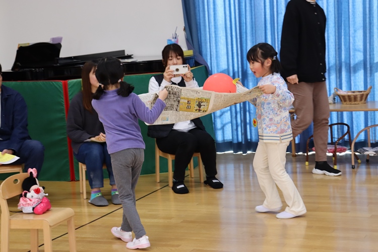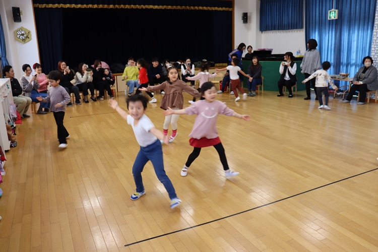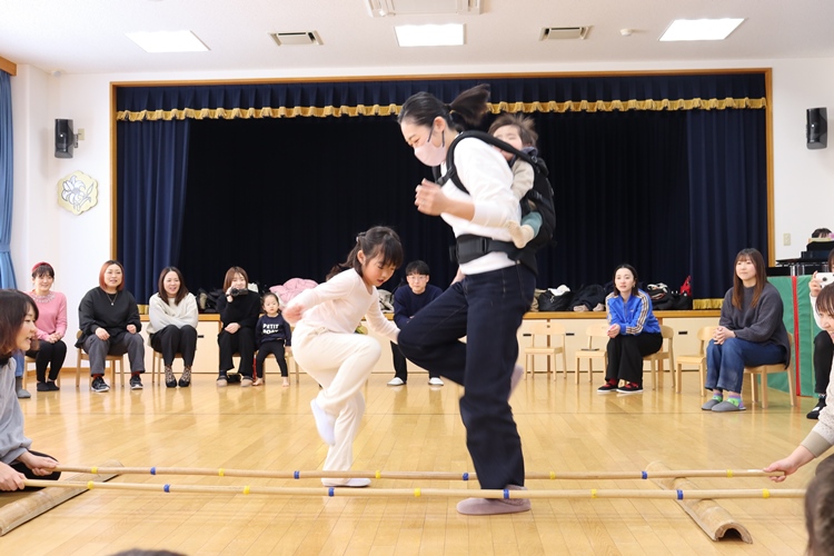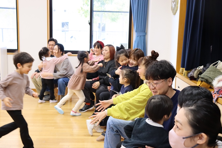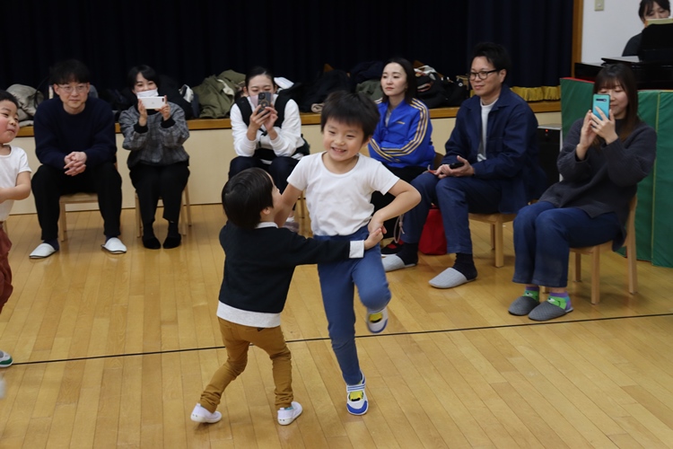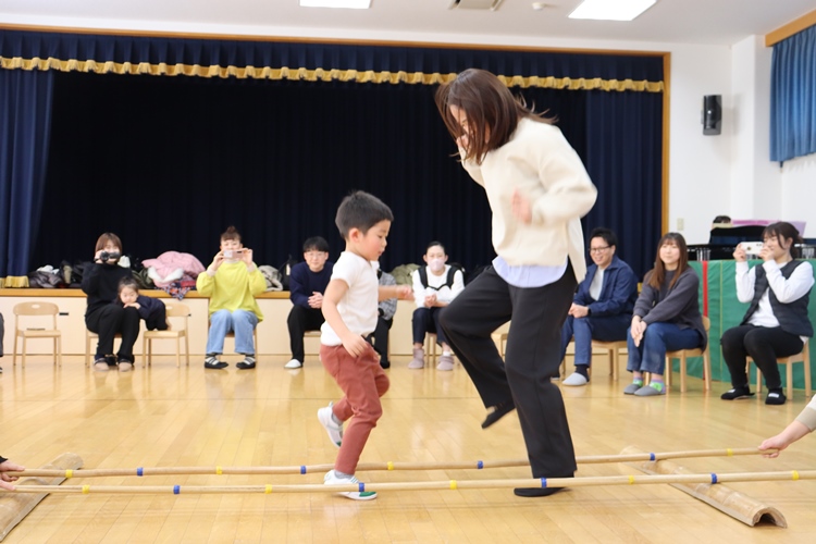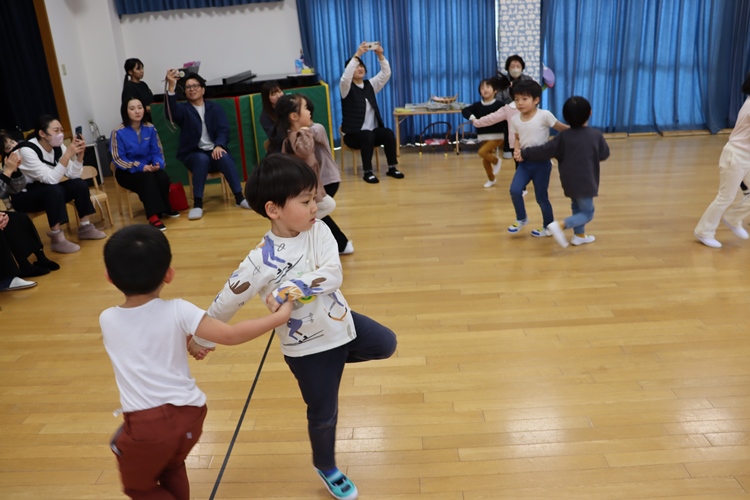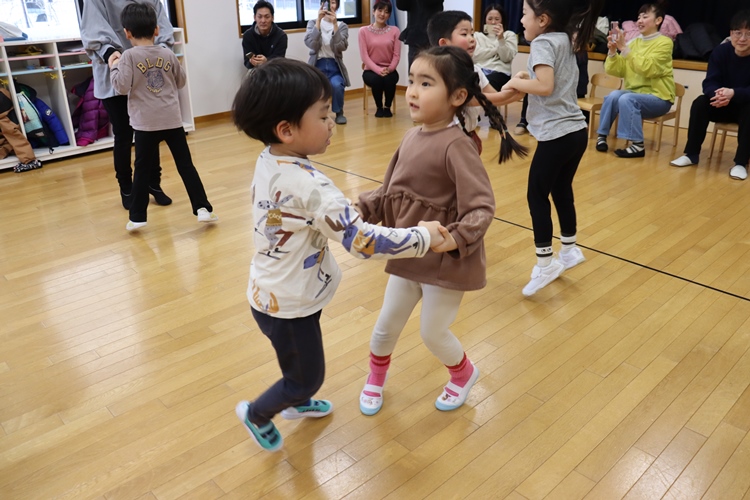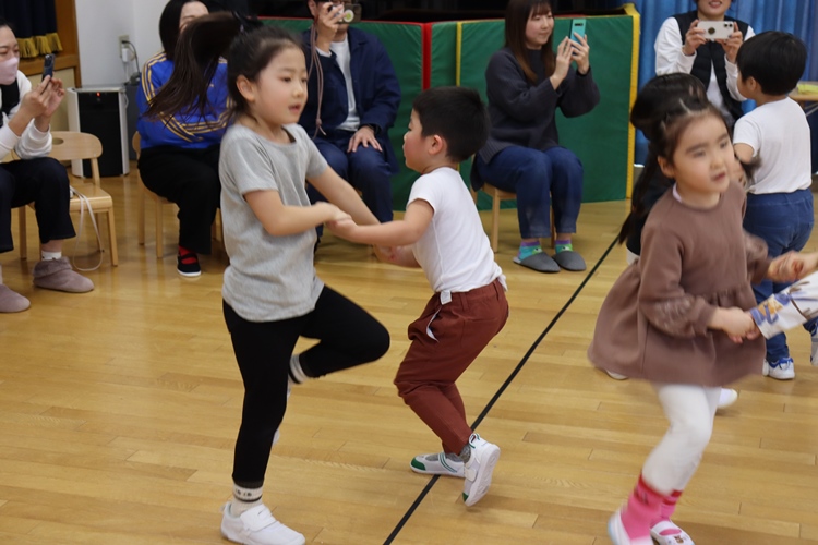 おうちの方と手をつないだり、「手はつながない!」と自分で考えたりしながら、親子で楽しく竹ダンスができましたね😊💗