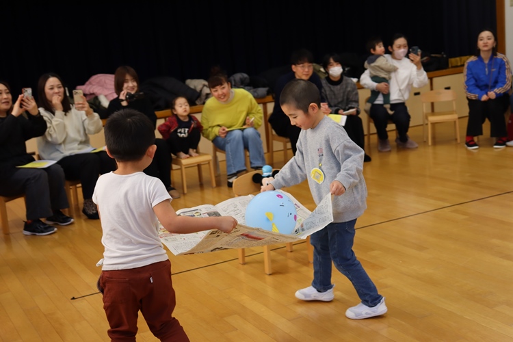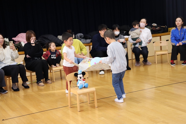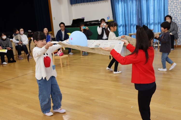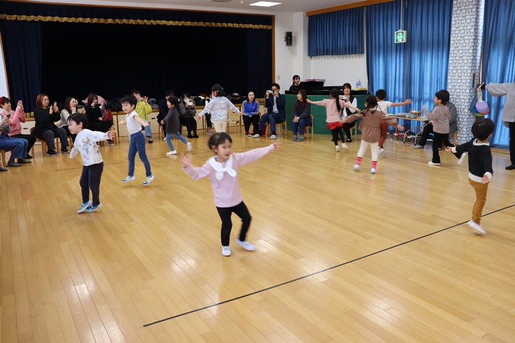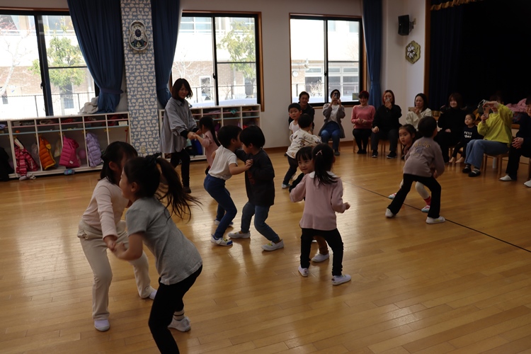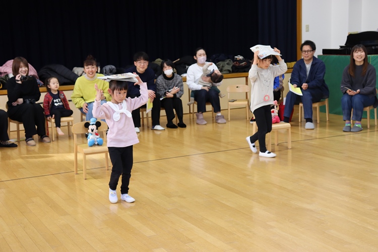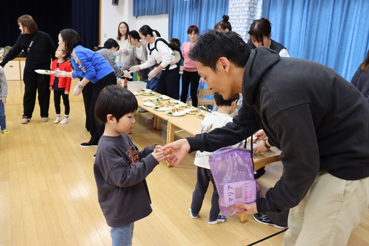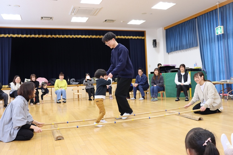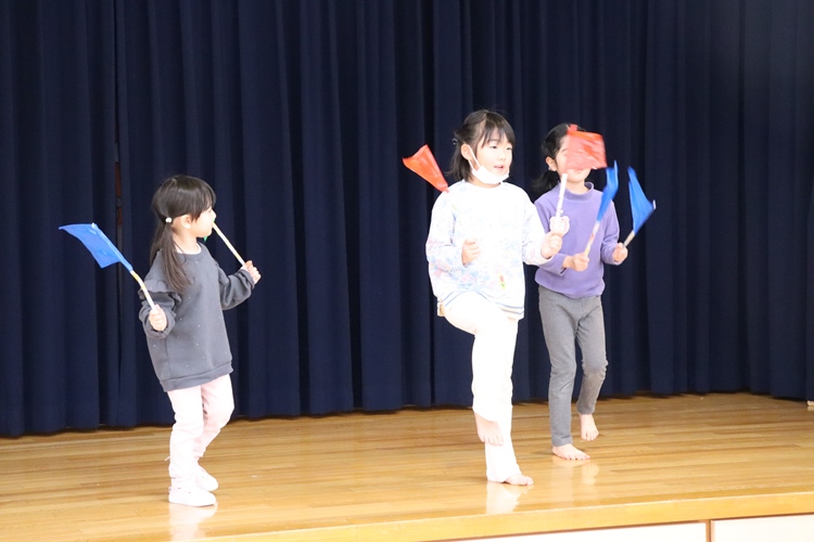 おうちの方と手をつないだり、「手はつながない!」と自分で考えたりしながら、親子で楽しく竹ダンスができましたね😊💗