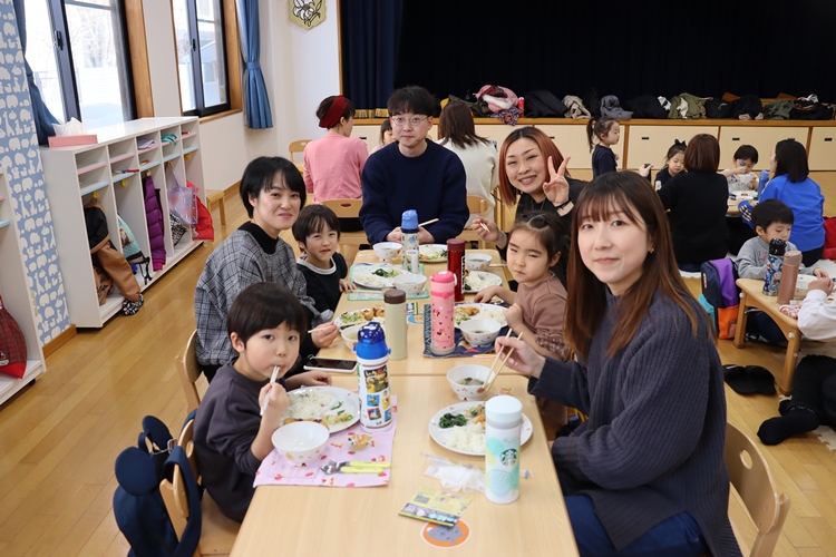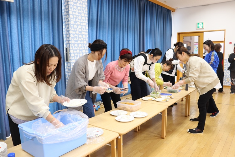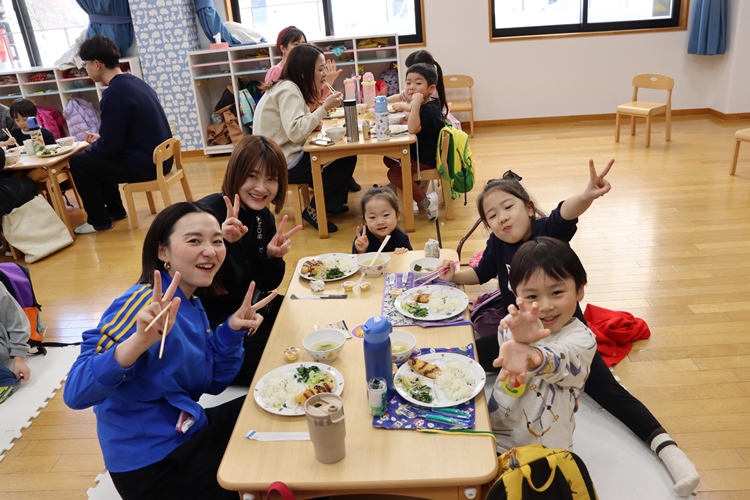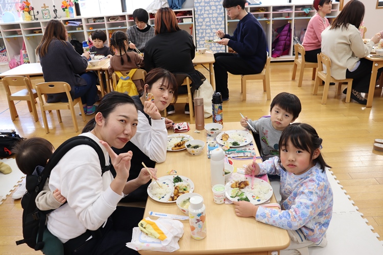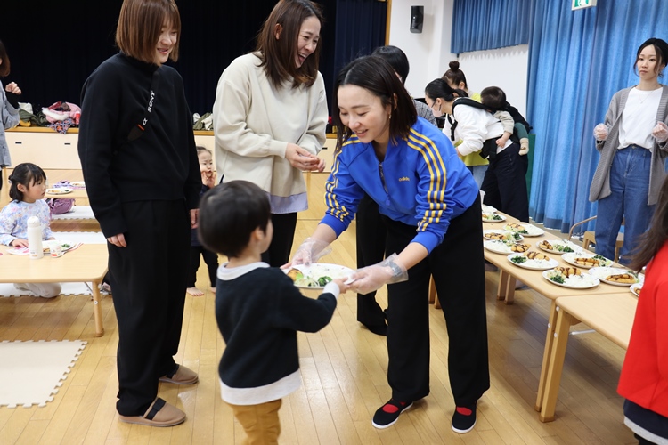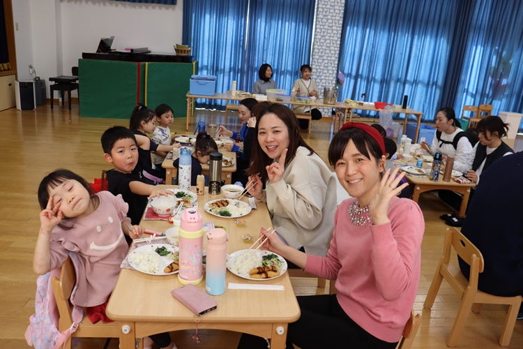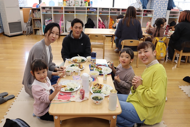 参観日は、おうちの方が配膳をお手伝いしてくれます😊