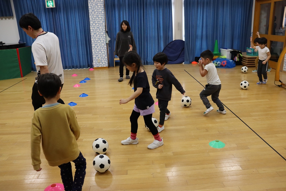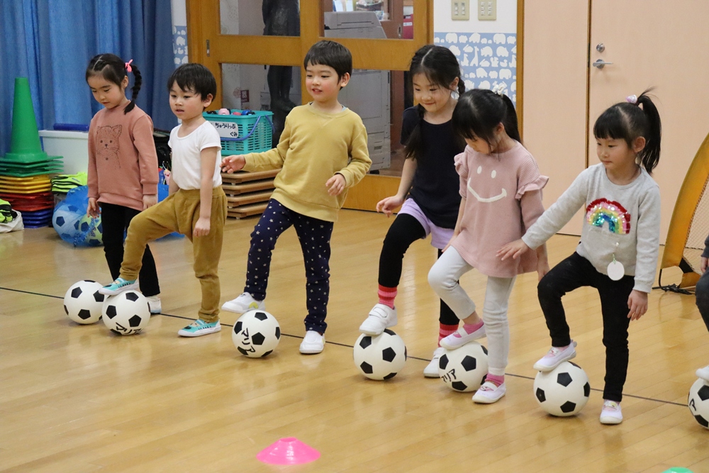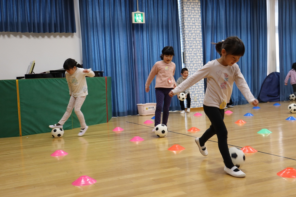 今度はサッカーボールを使って足で蹴ってみよう~♬