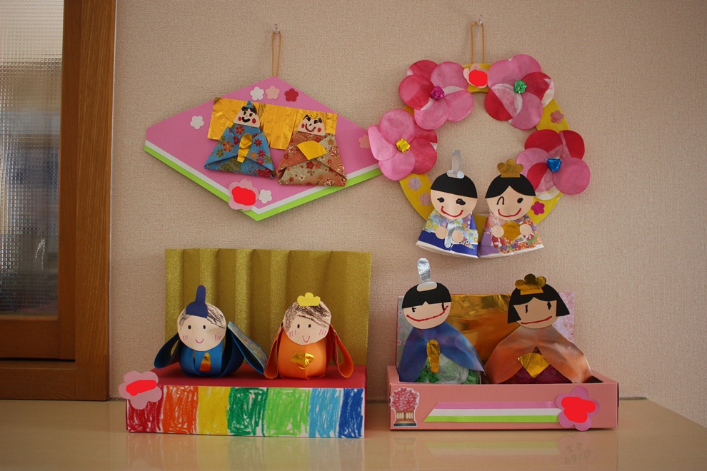 みんなが作ったお雛様の飾りがにこにこ😊とうれしそうにしている中✨