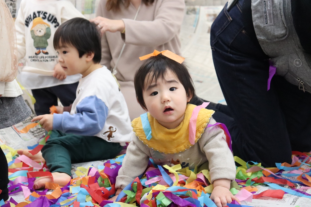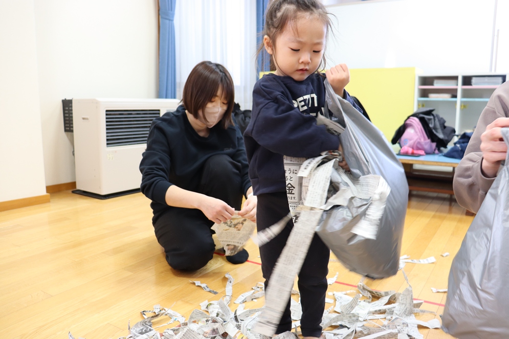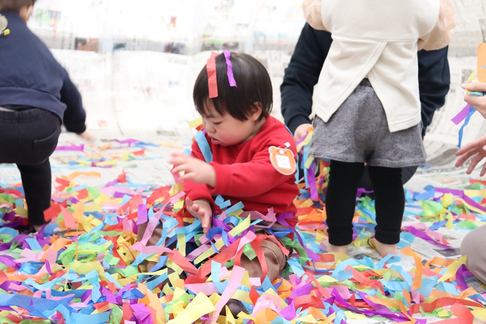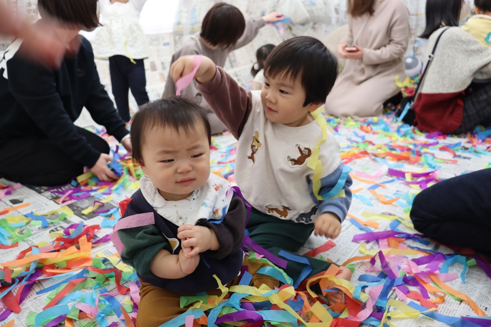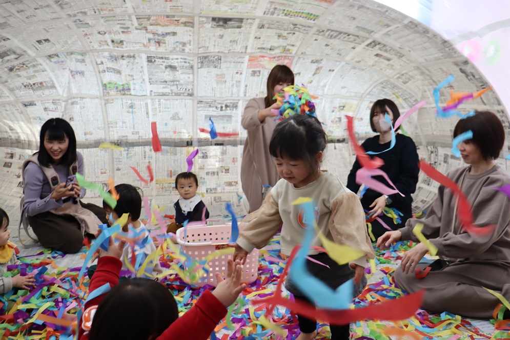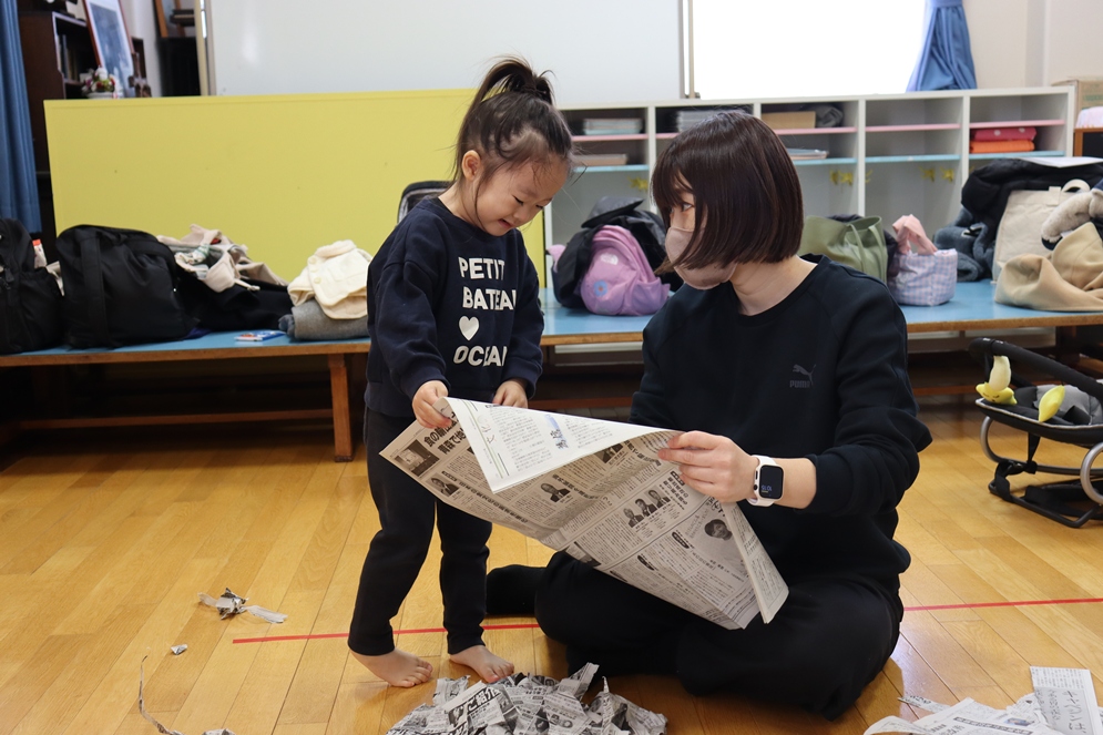 この日の子育て支援は、お家ではなかなかできない?!ダイナミックな新聞遊びをしました🎵