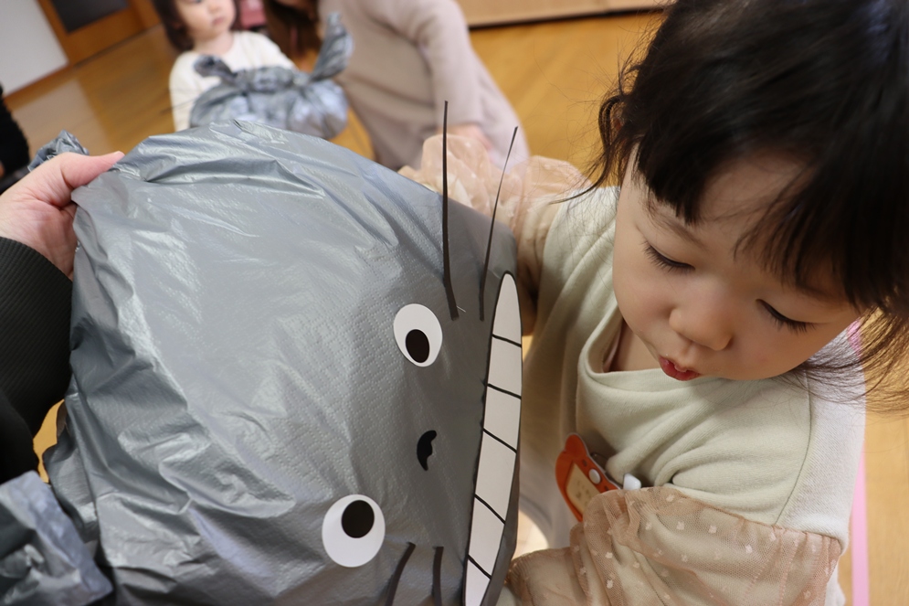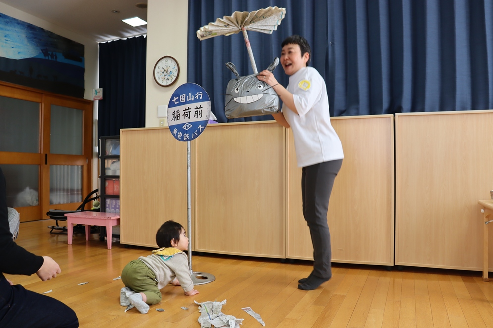 今度はビリビリ新聞を集めて・・・雨の日トトロに変身!☔