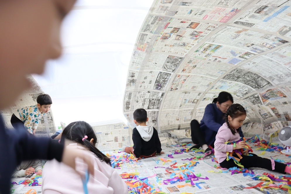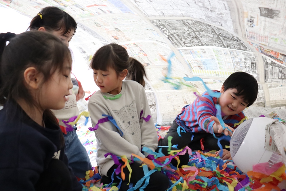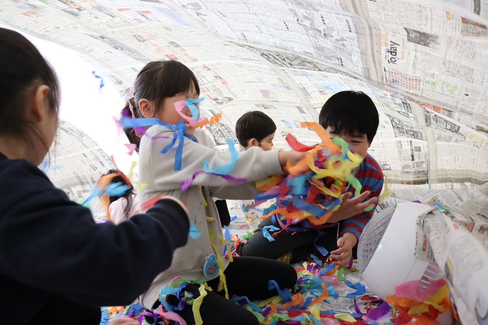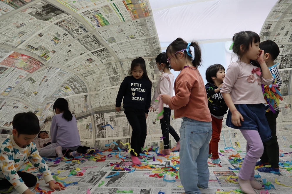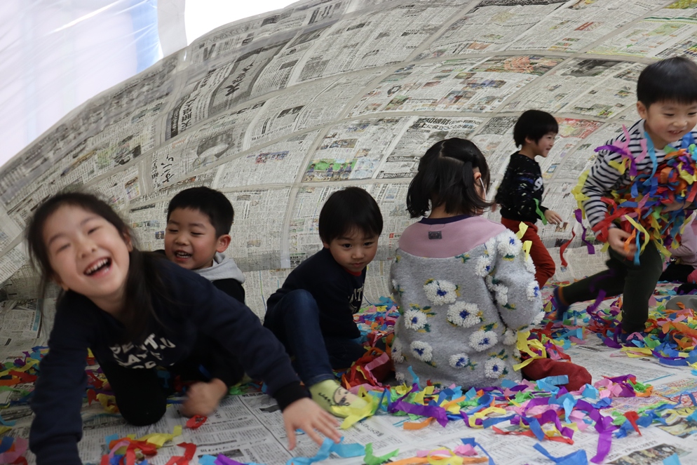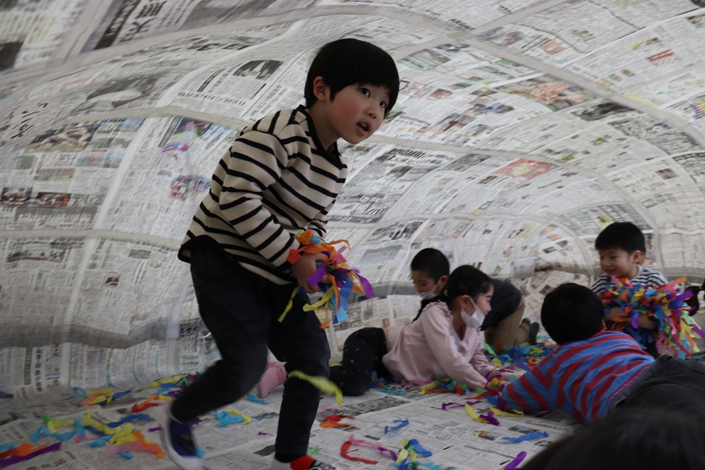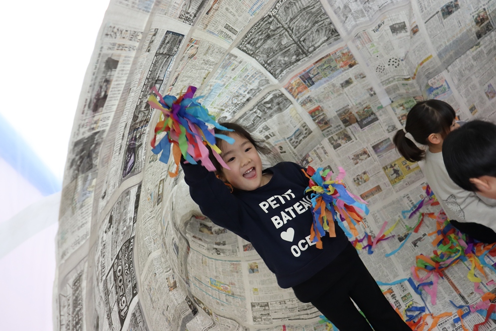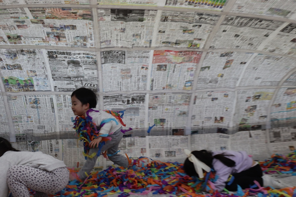 ホールに突如現れた新聞ドーム!!