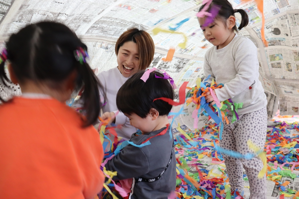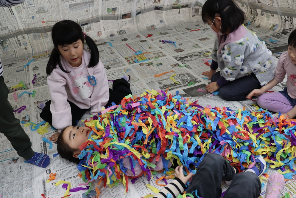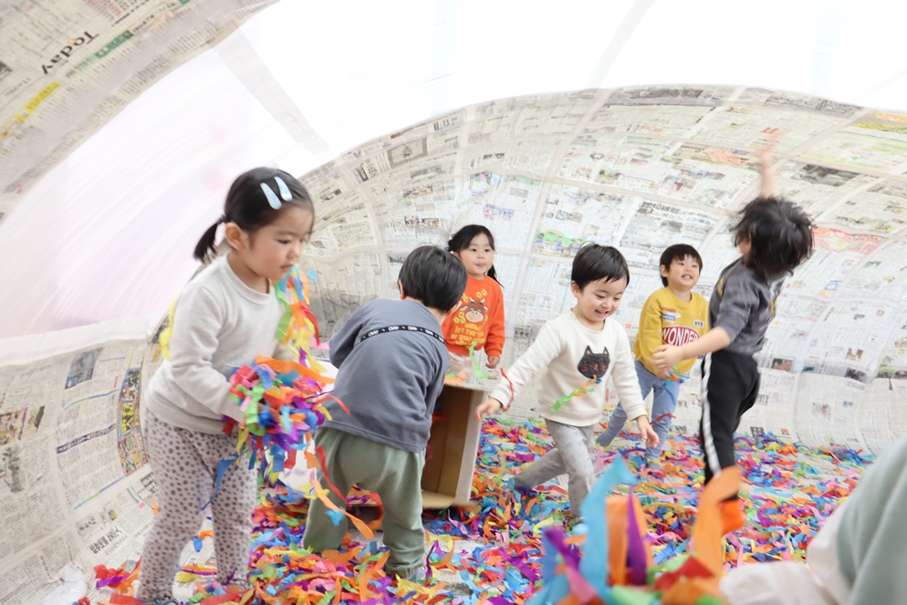 (お引越したお友だちがマリア幼稚園に遊びにきてくれましたよ😚✨新聞ドームで一緒に遊びました💚)
