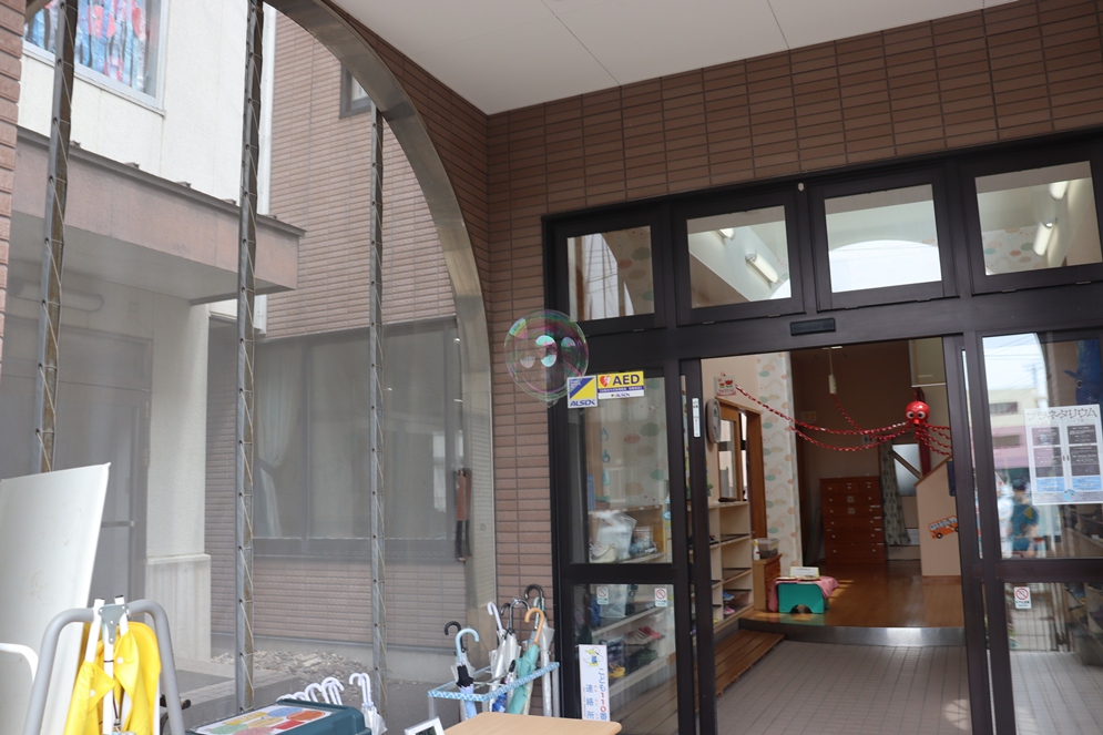 幼稚園の中までふわふわとやってきたシャボン玉💙
