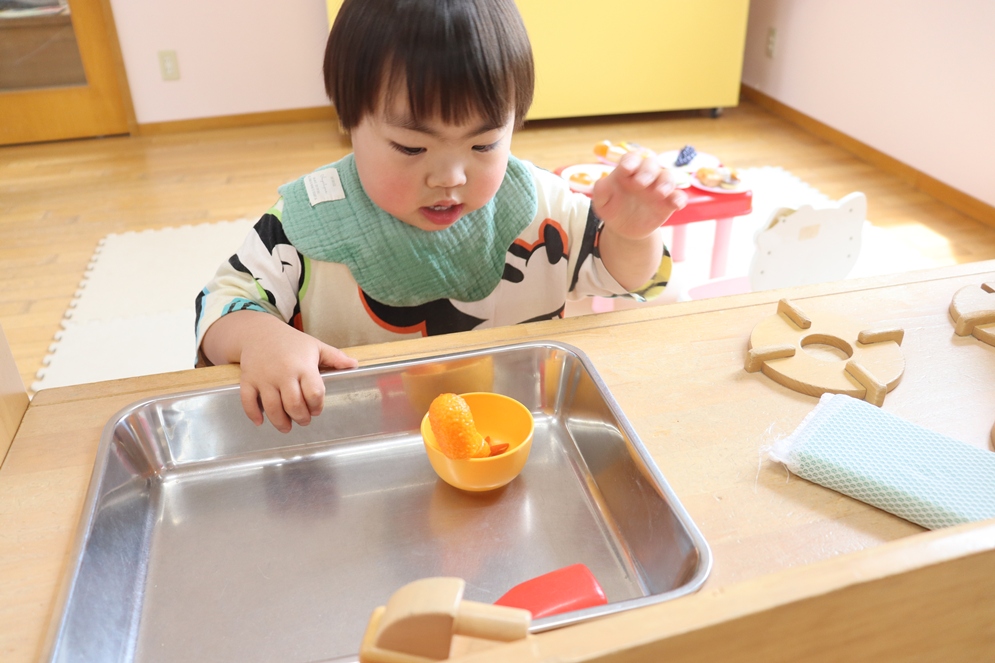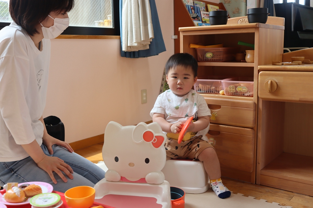 おままごとやメルちゃん、洗濯ばさみなど色々なおもちゃを見つけてあそんでいました😄💜