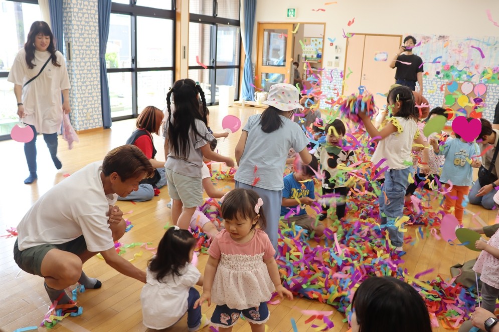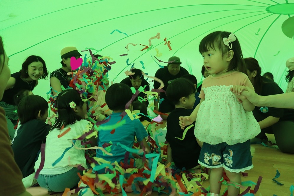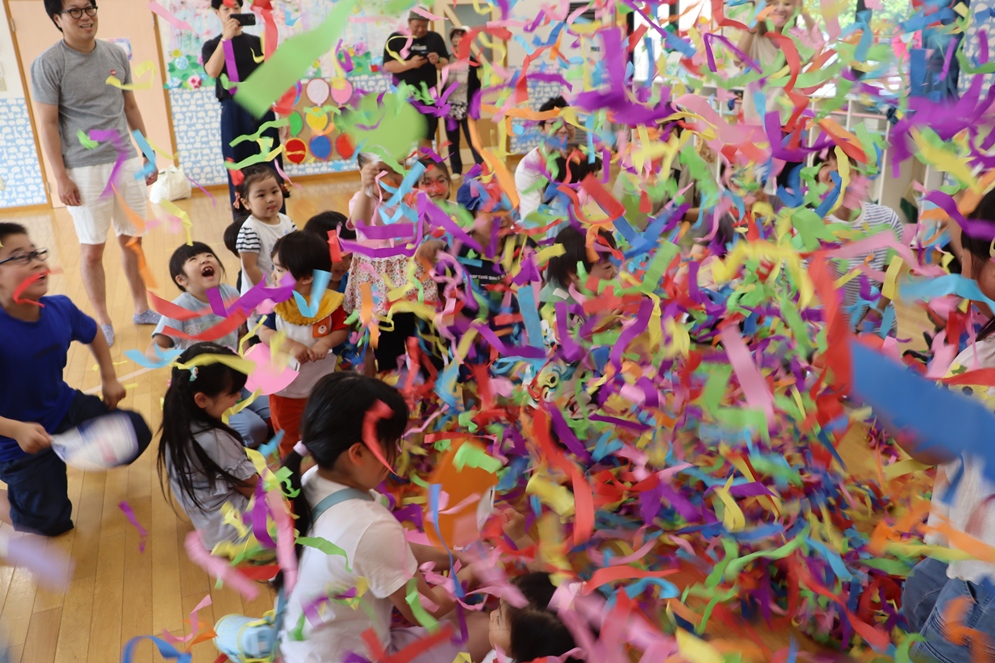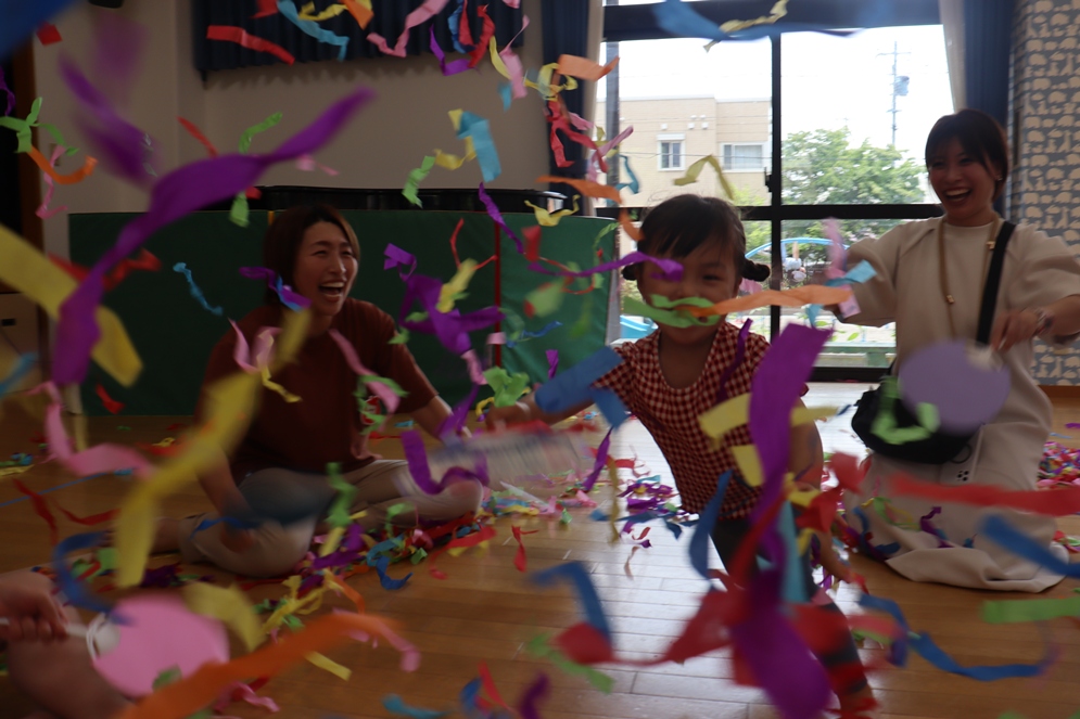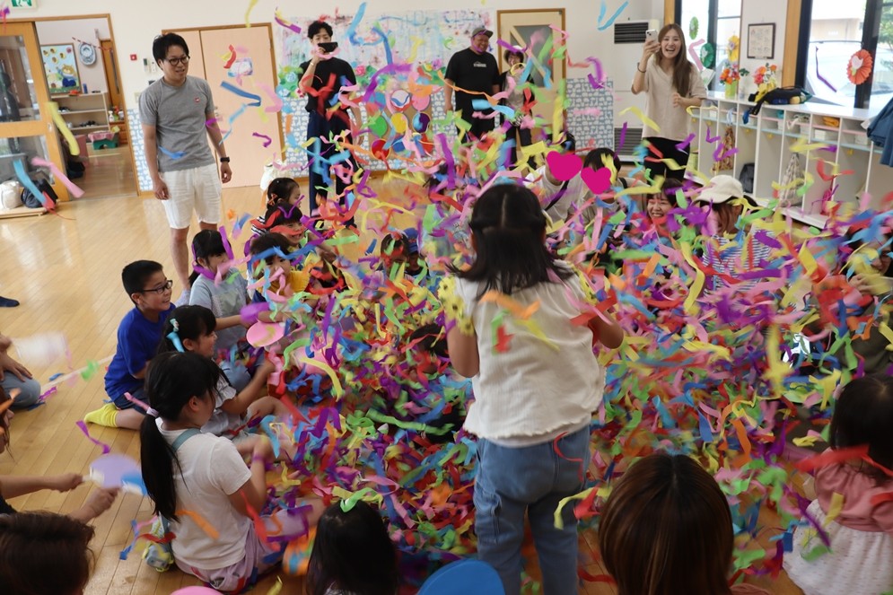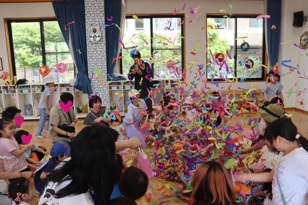 お花紙が、ぶわ~~~~っと天井に舞い上がり、大人も子供の大盛り上がり😄✨