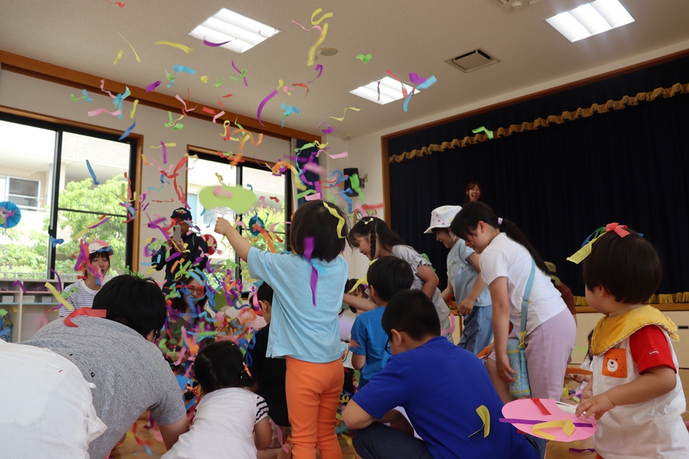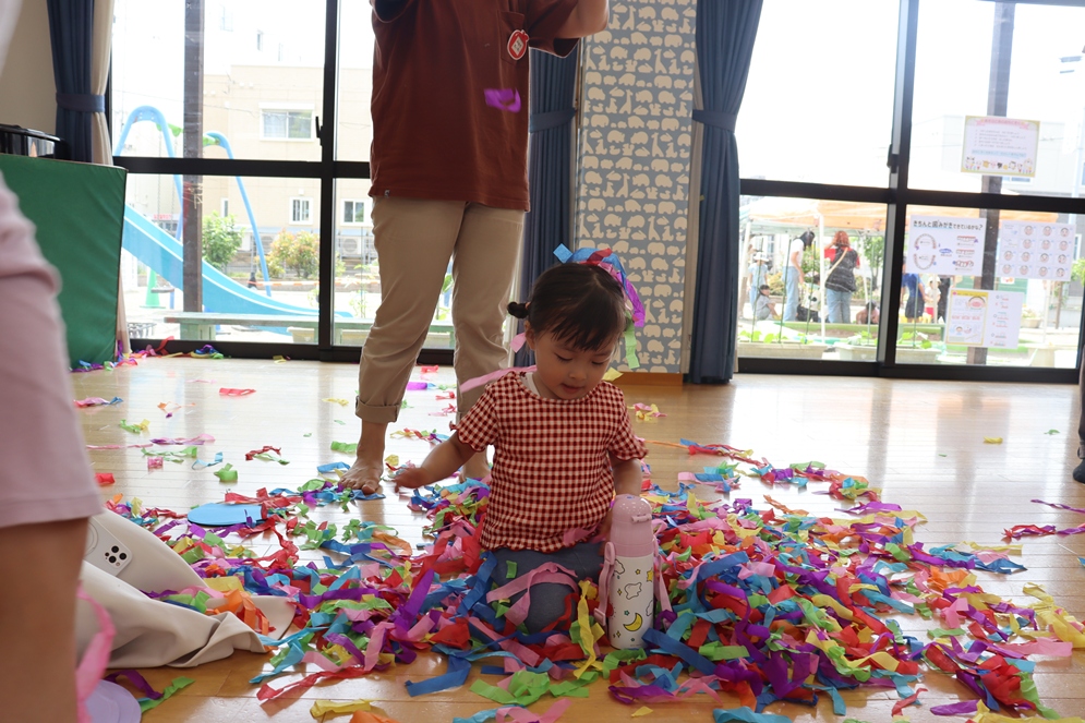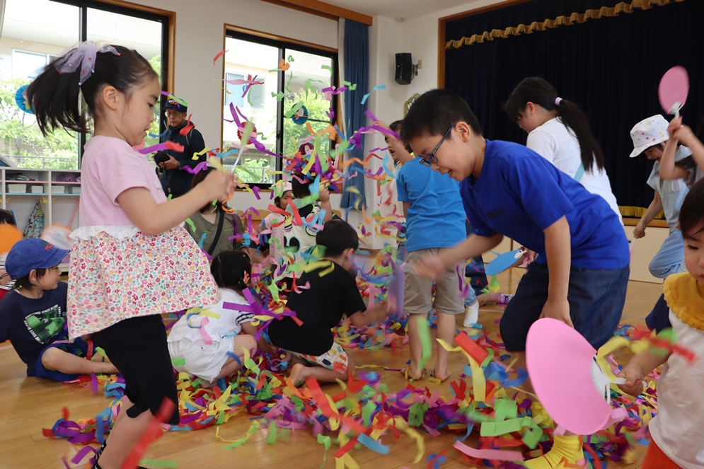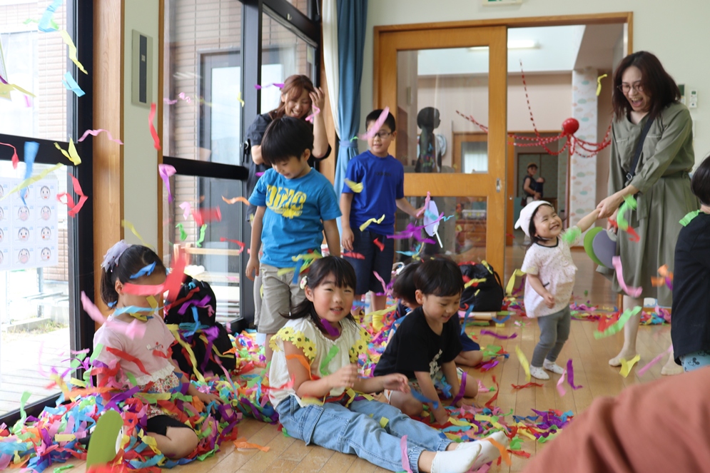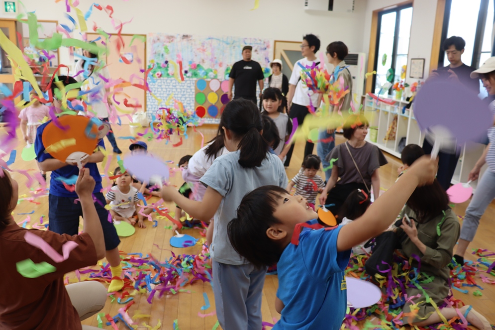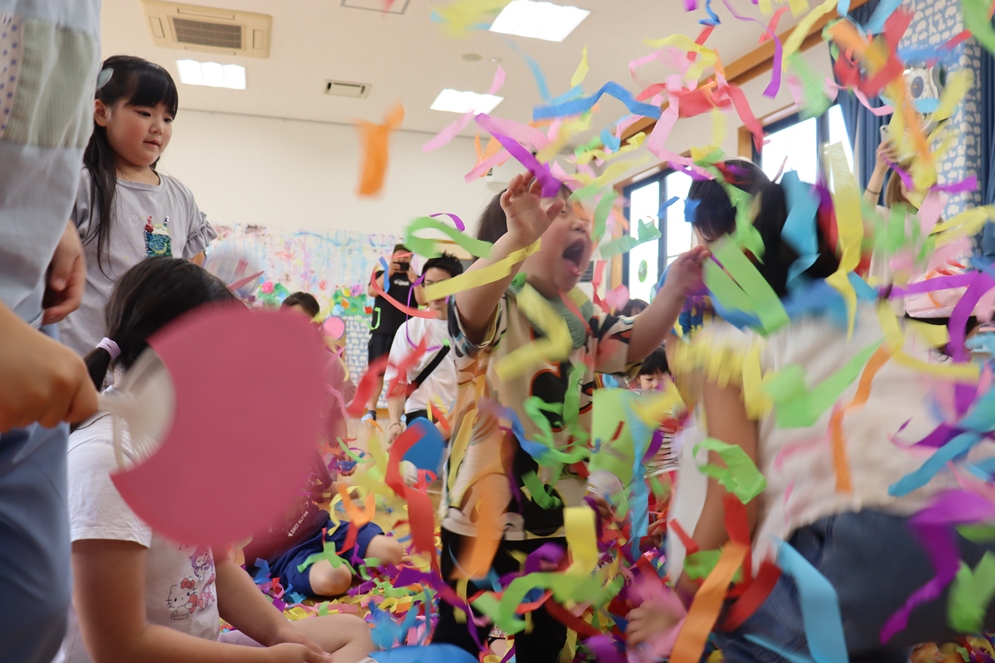 お花紙が、ぶわ~~~~っと天井に舞い上がり、大人も子供の大盛り上がり😄✨