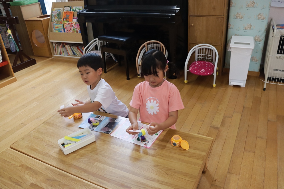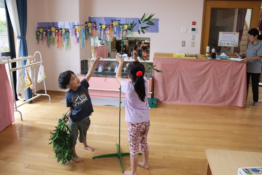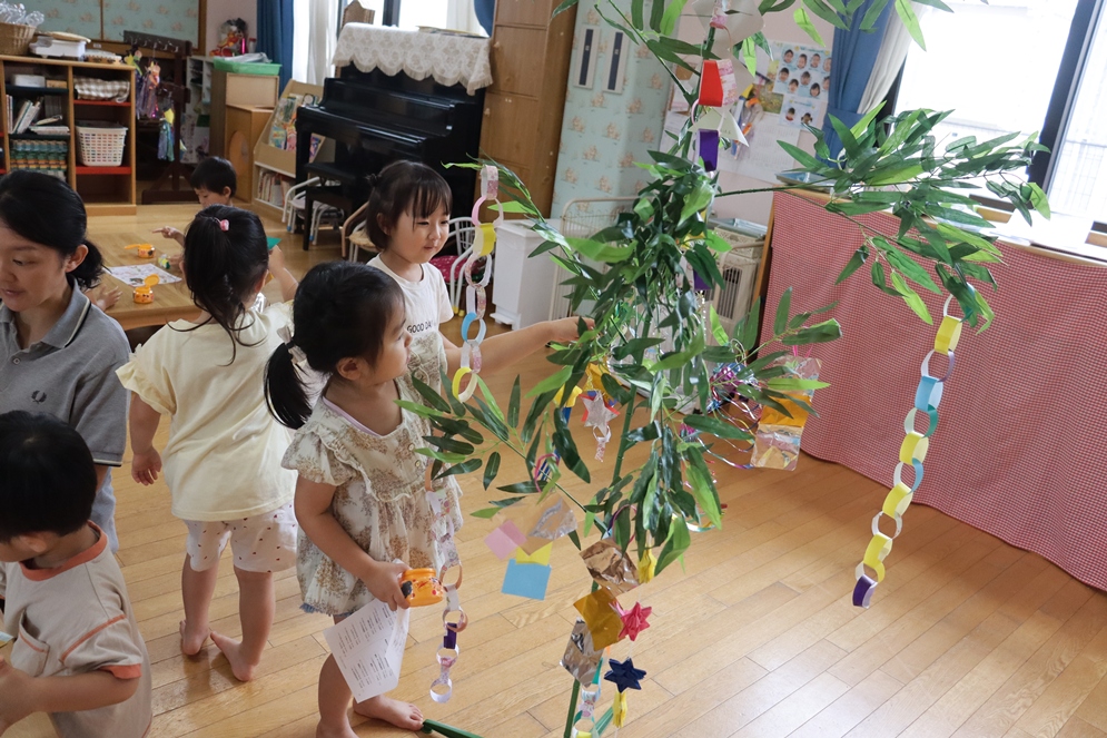 数日前から、幼稚園では七夕の笹飾りが始まりました✨