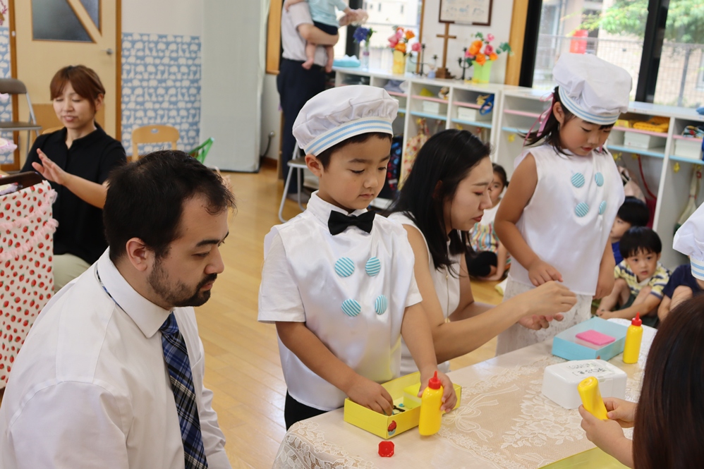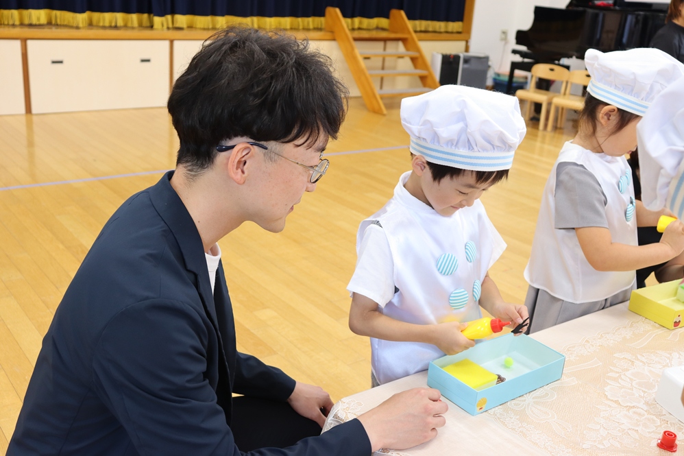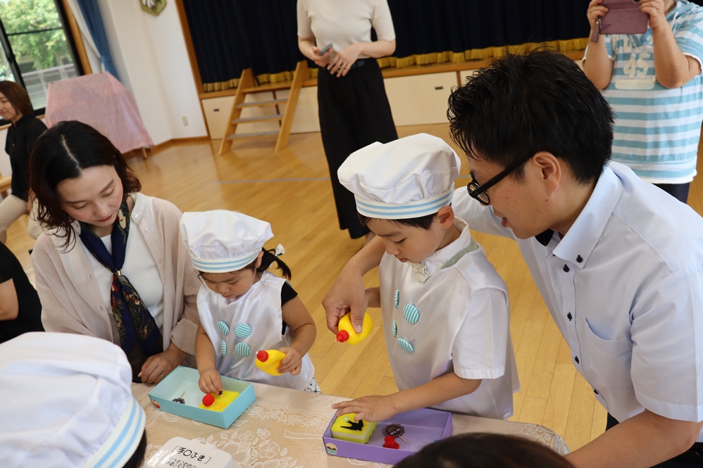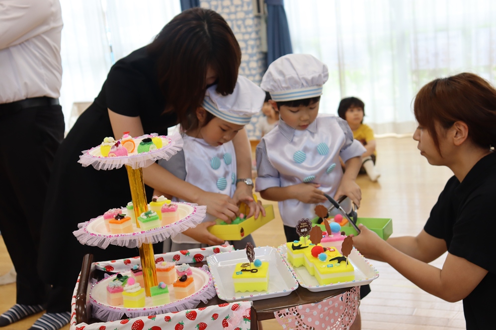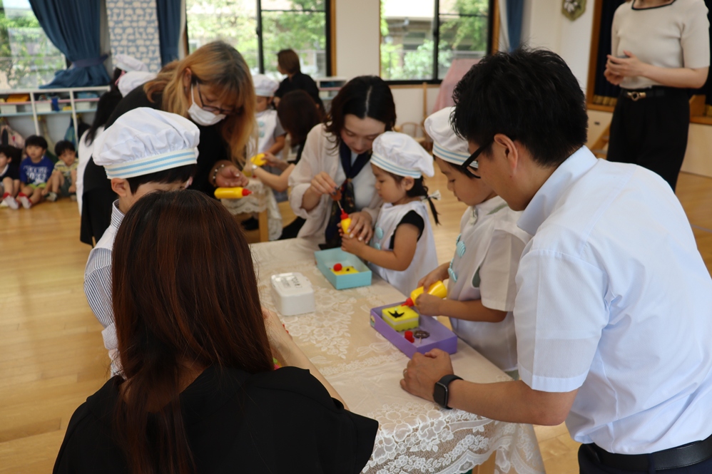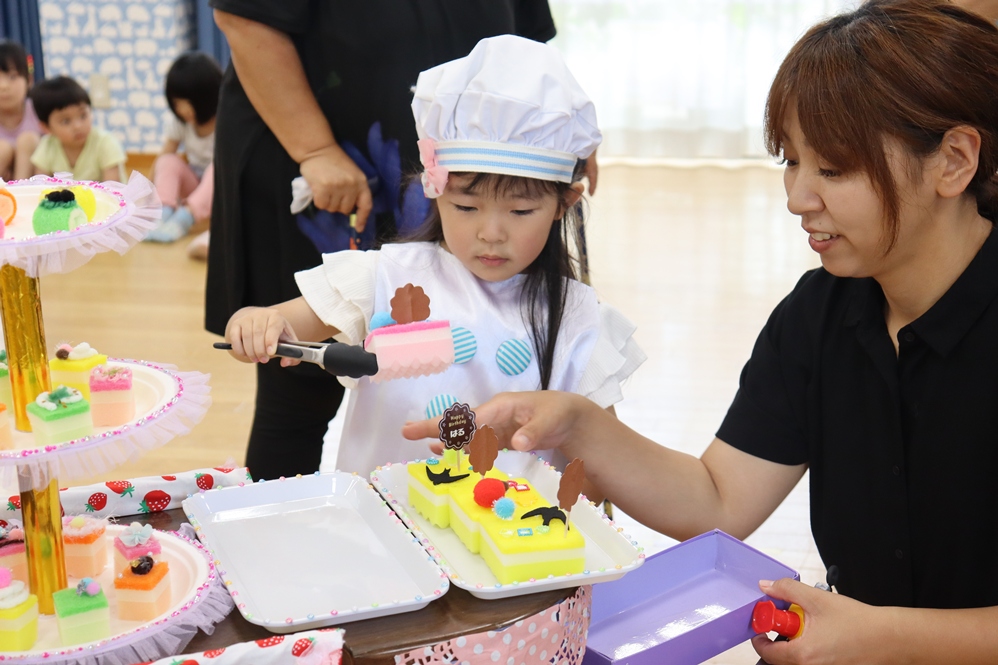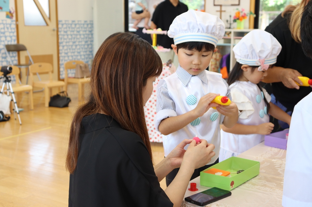 お次はおうちの方と一緒にケーキのデコレーションです🎀