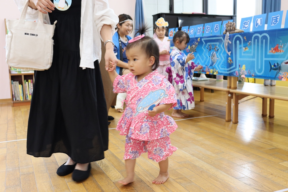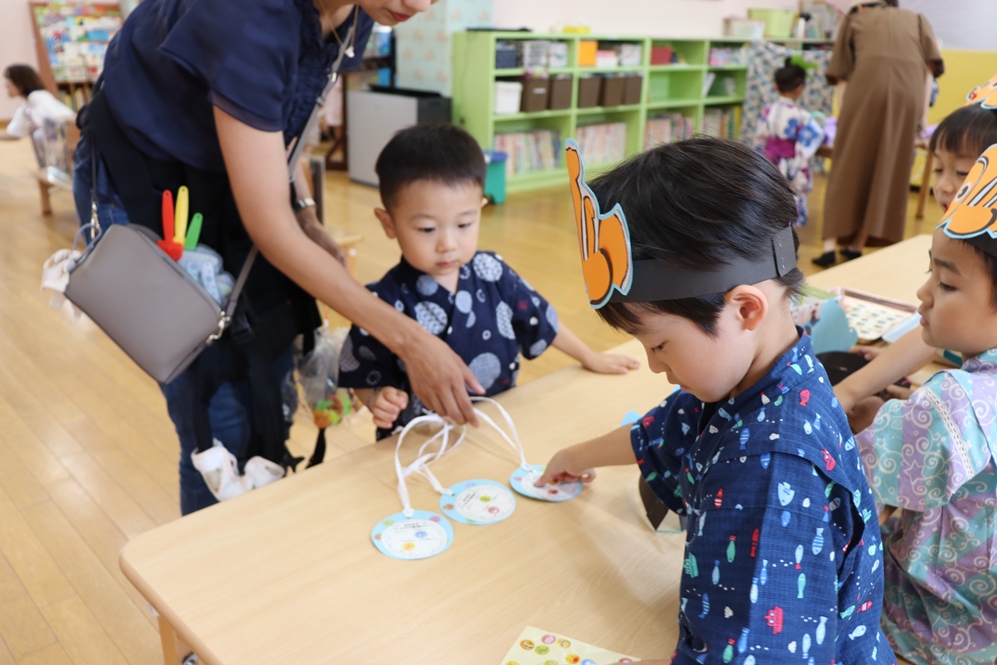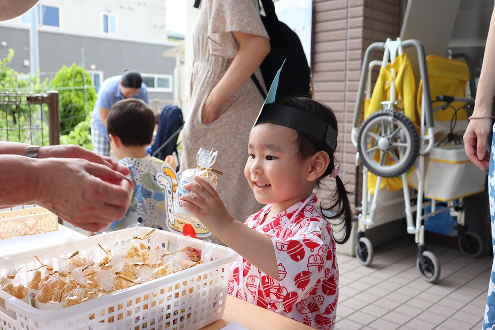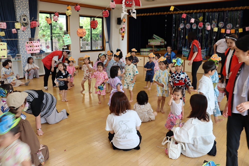 お兄さんお姉さんと手をつないで、盆踊りや歌を歌ったり🎵