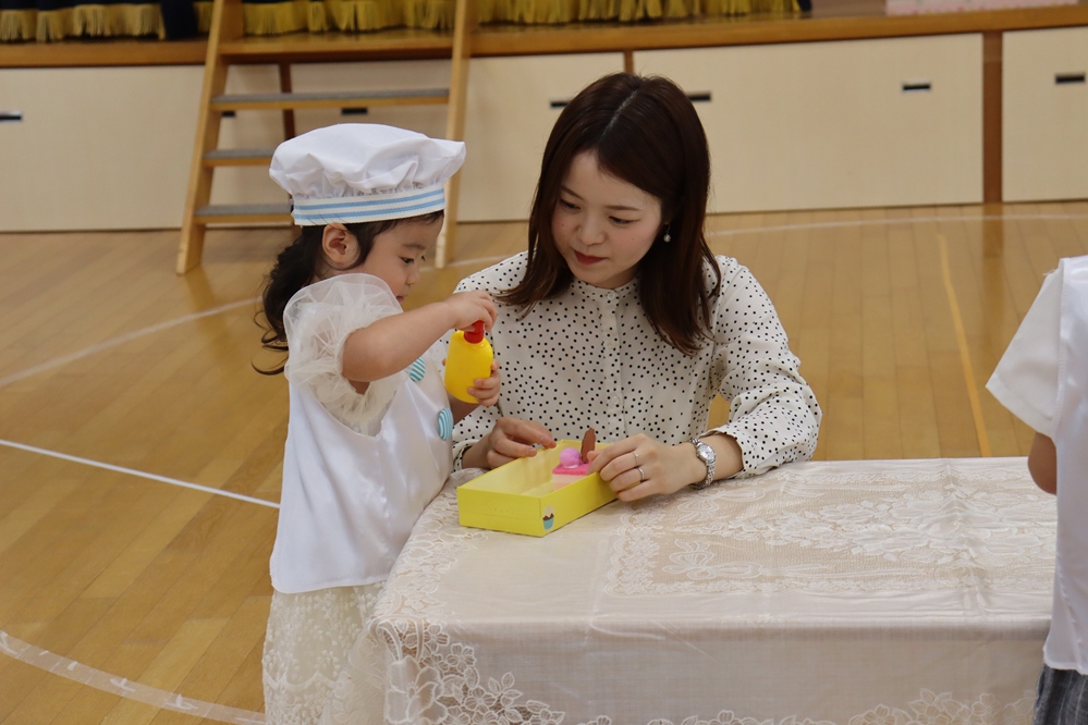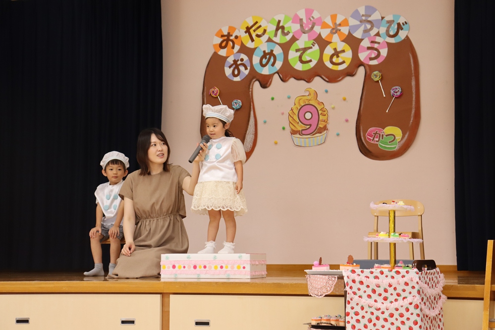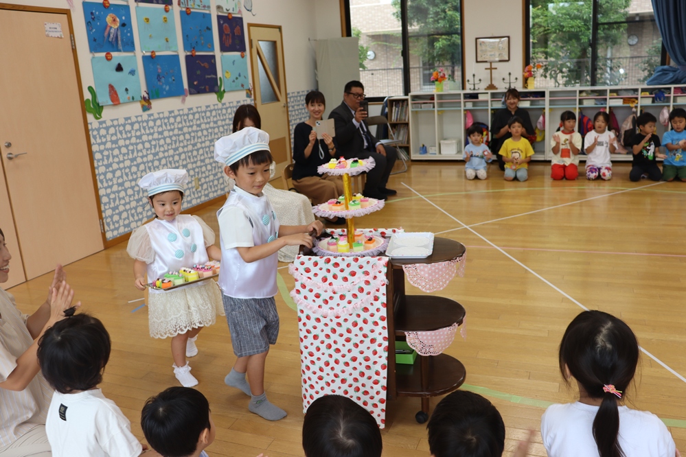 幼稚園に戻った後は、素敵なパティシエに変身して、お誕生セレモニーです!!
