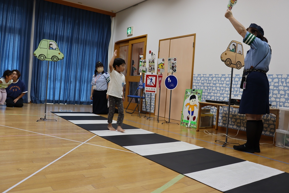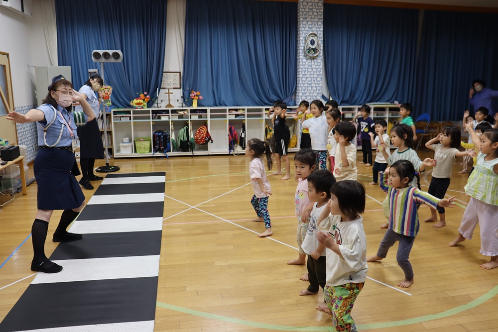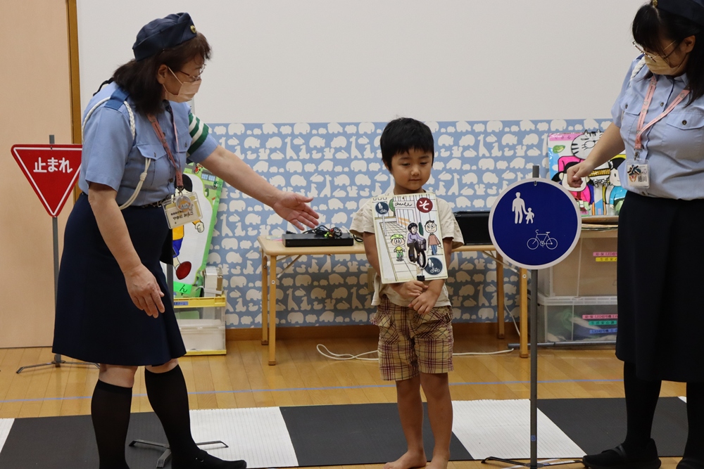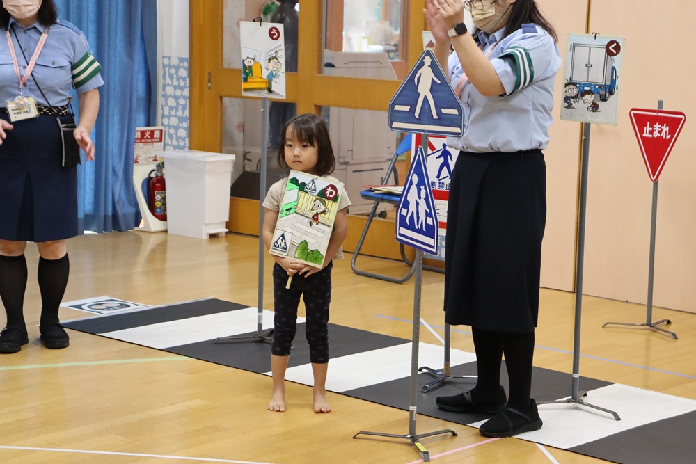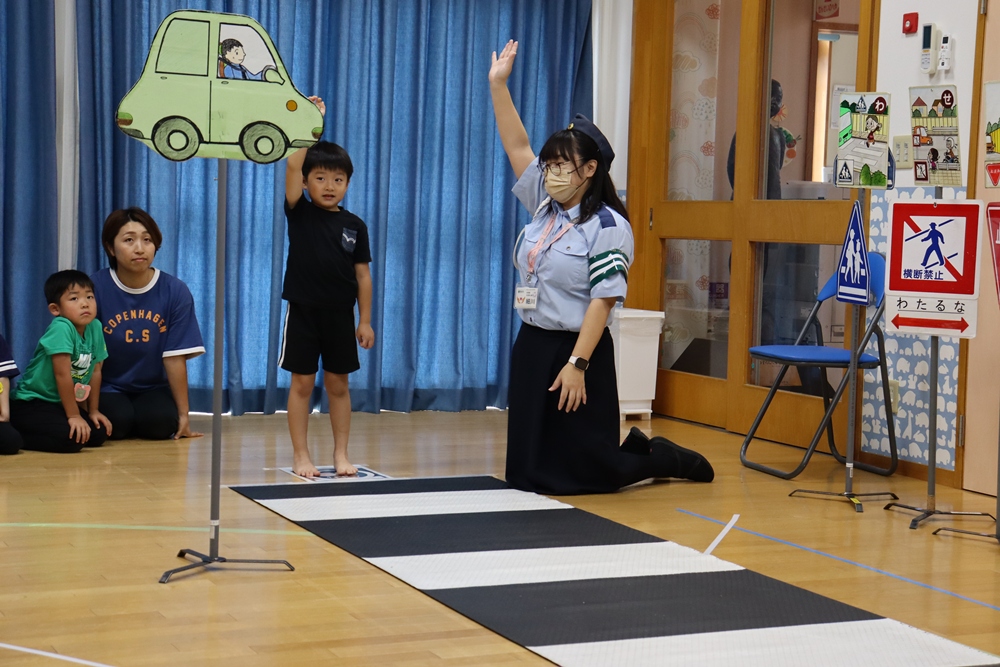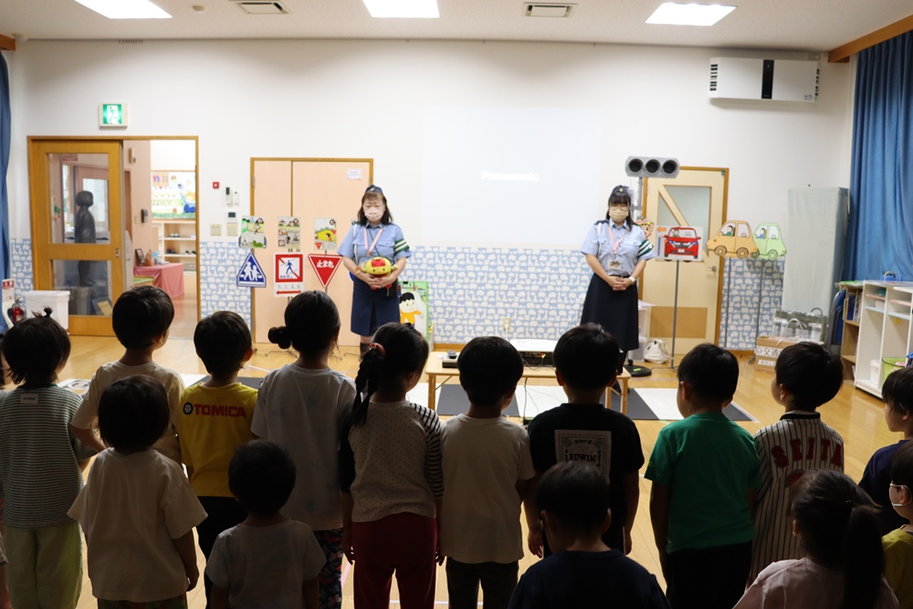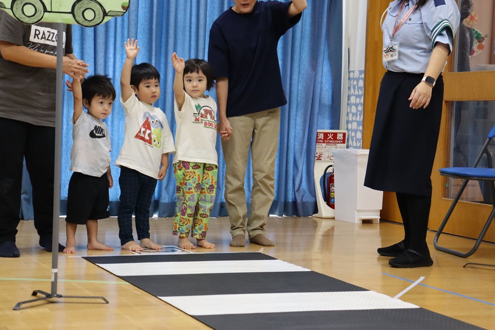 交通指導員の方が幼稚園に来て、交通ルールを教えてくれました🤗