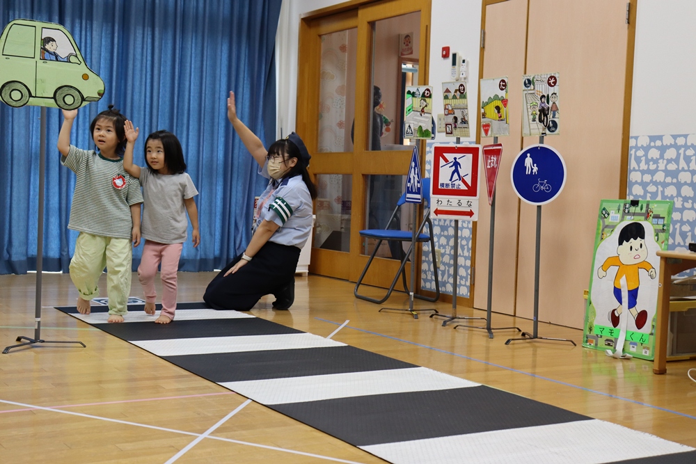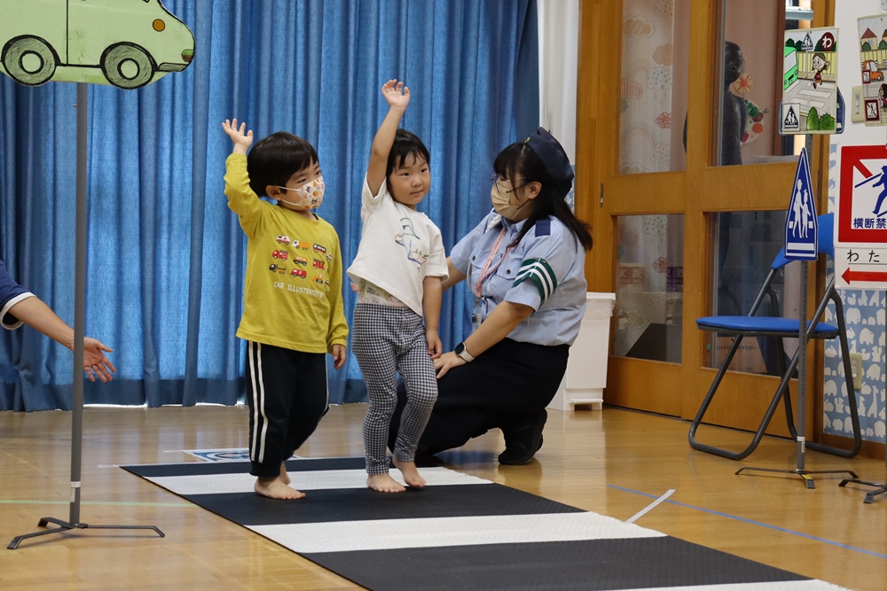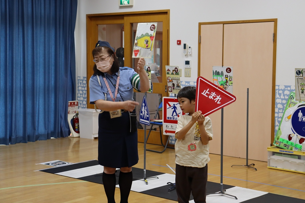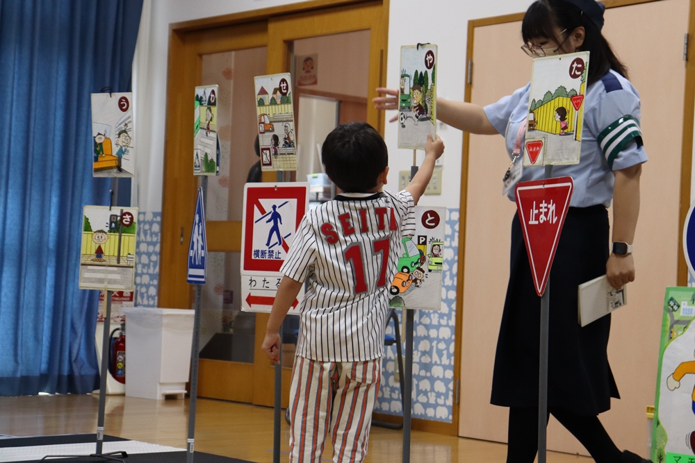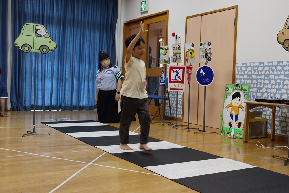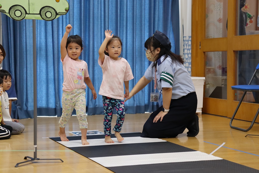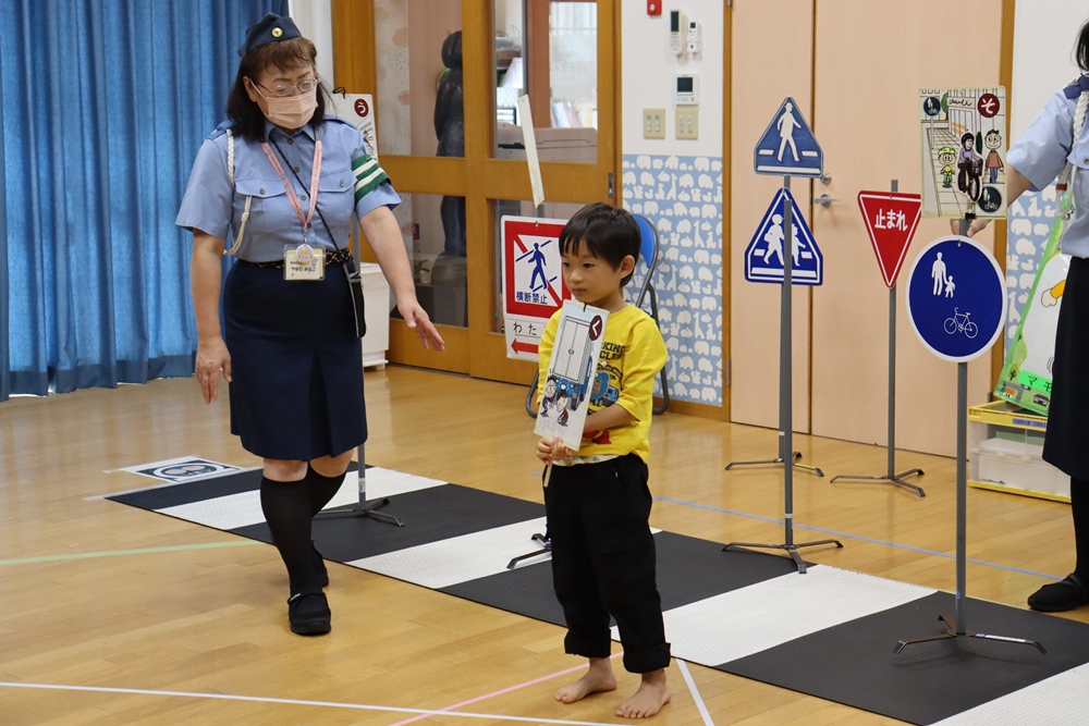 交通指導員の方が幼稚園に来て、交通ルールを教えてくれました🤗