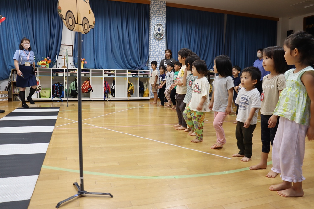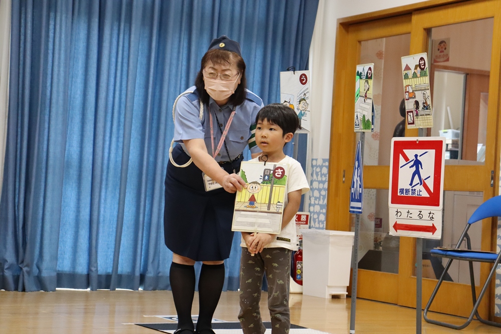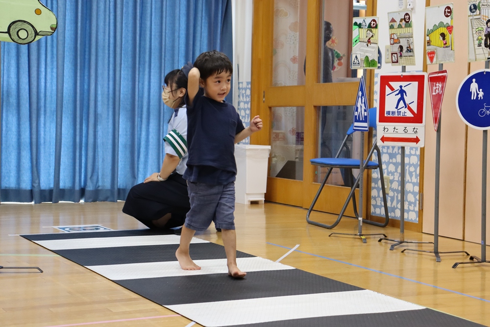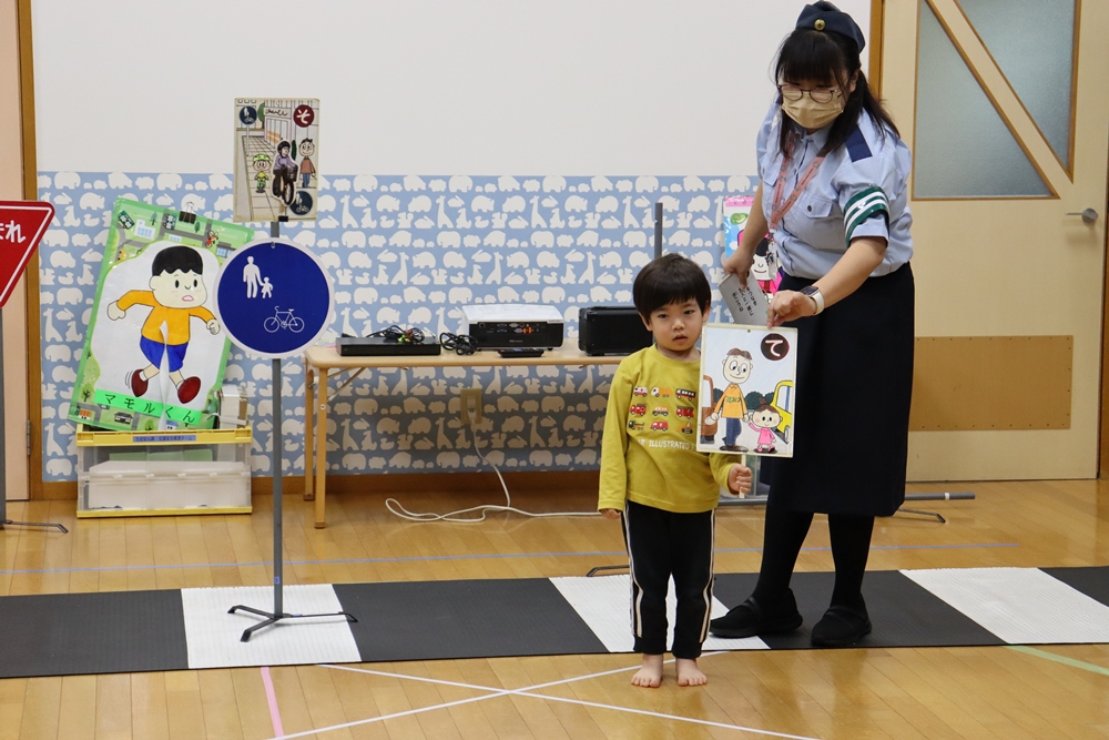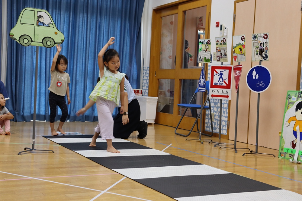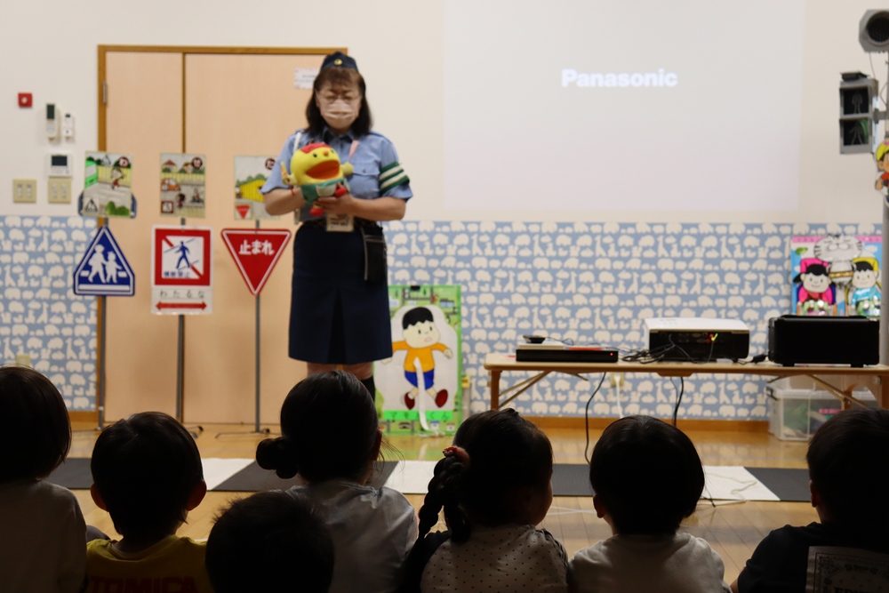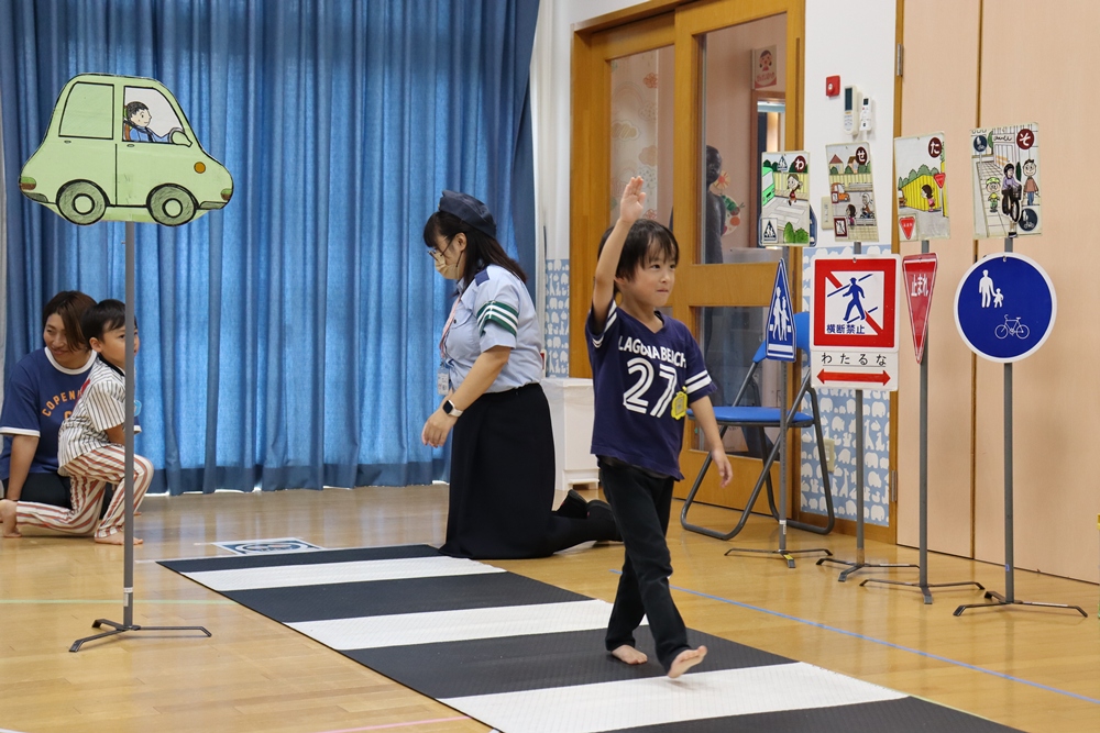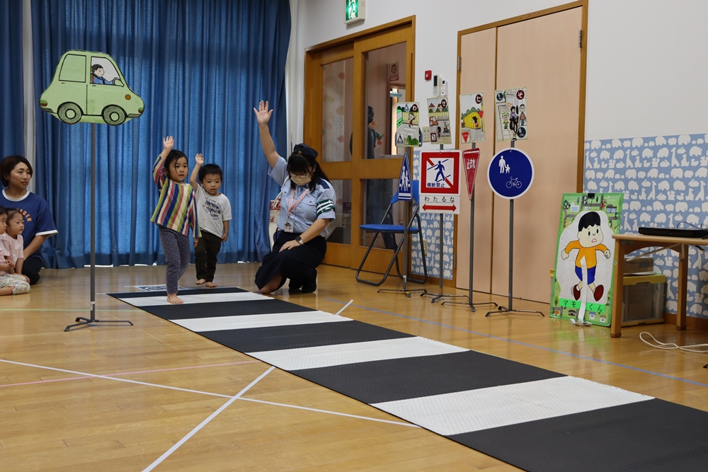 交通指導員の方が幼稚園に来て、交通ルールを教えてくれました🤗