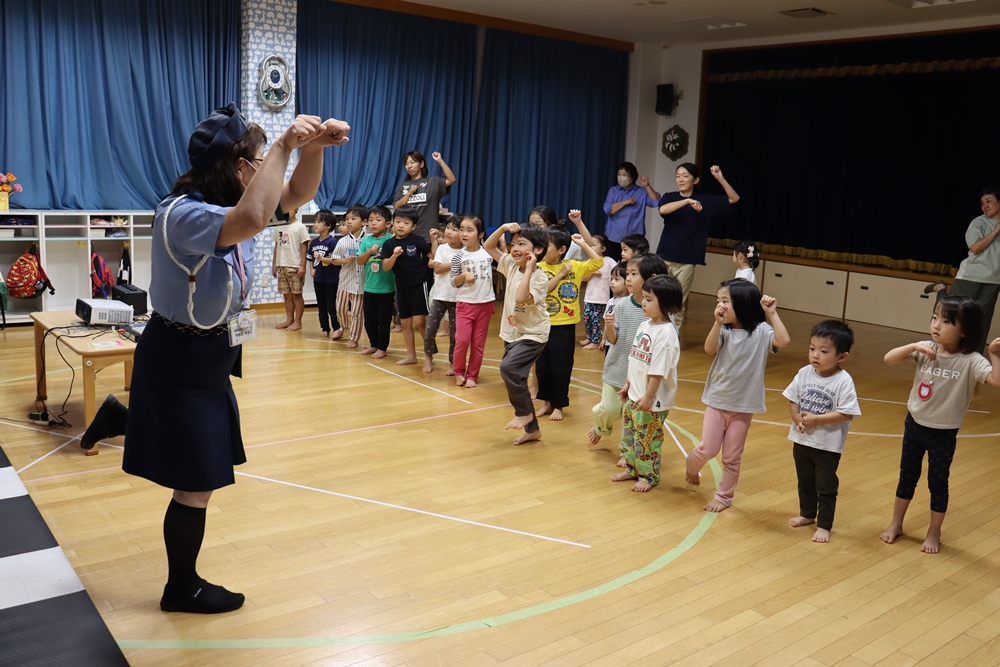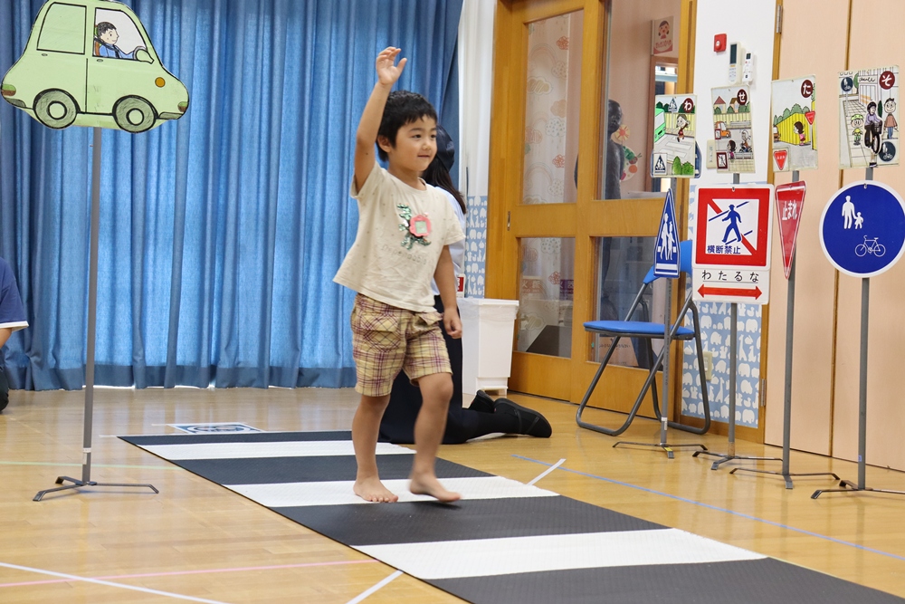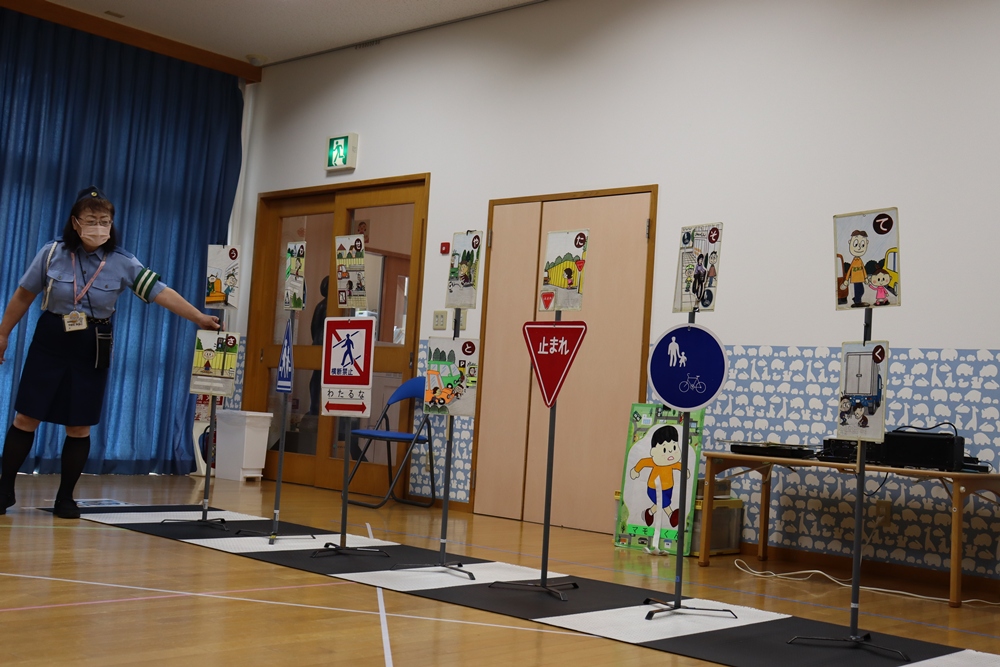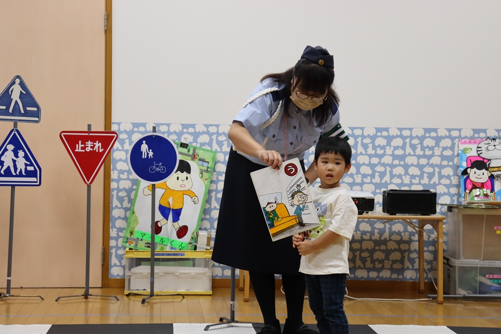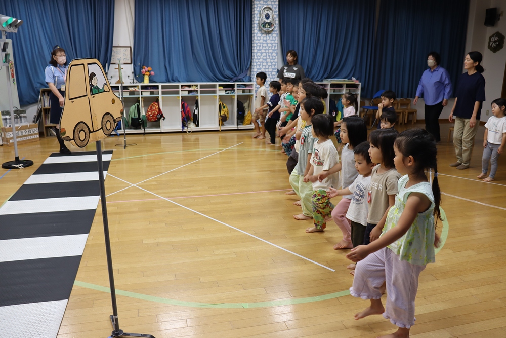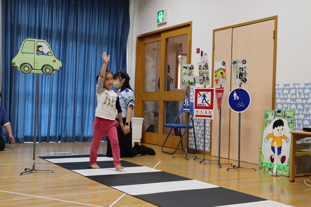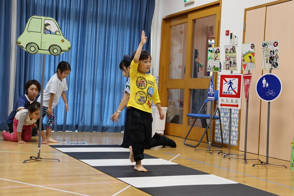 交通指導員の方が幼稚園に来て、交通ルールを教えてくれました🤗