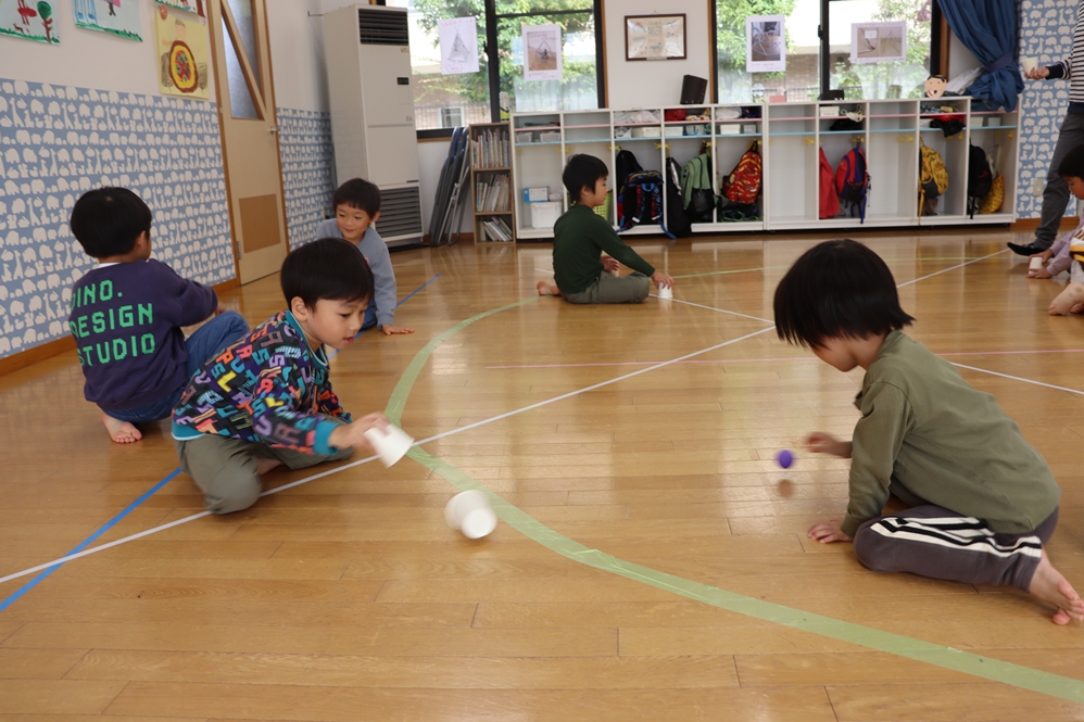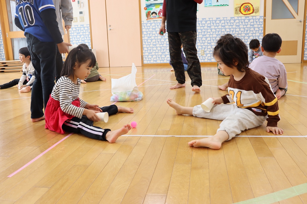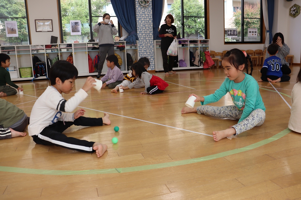紙コップでボールをキャッチする動きでは「こっちにきた!!」「ナイスキャッチ😁」とお互いに声をかけ合っていましたよ