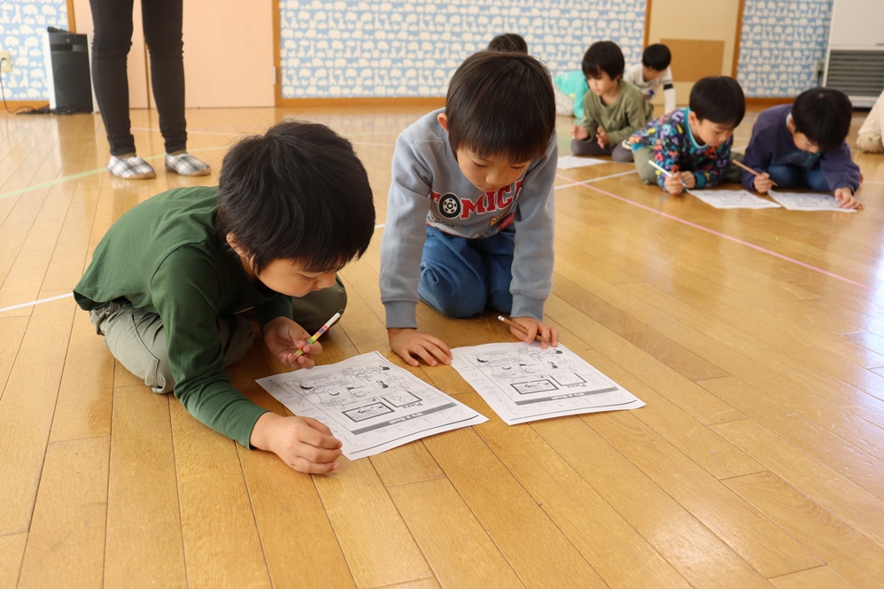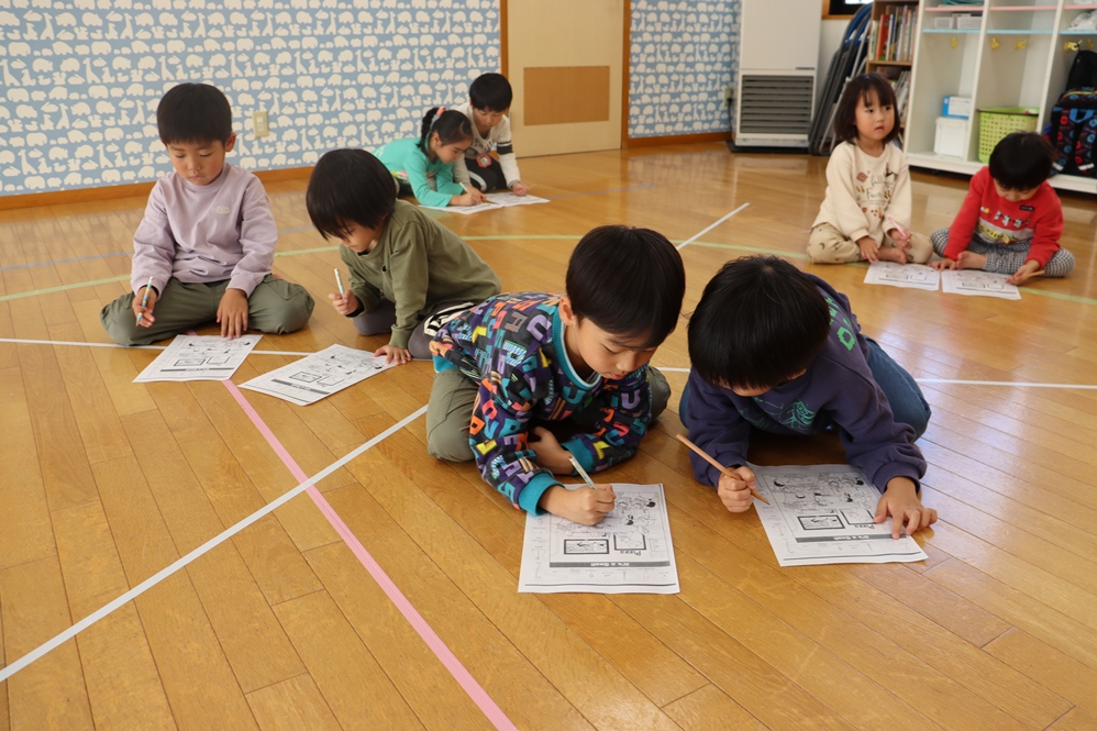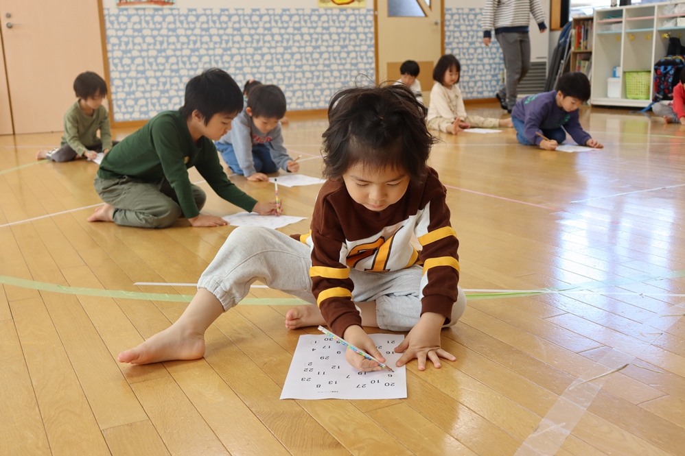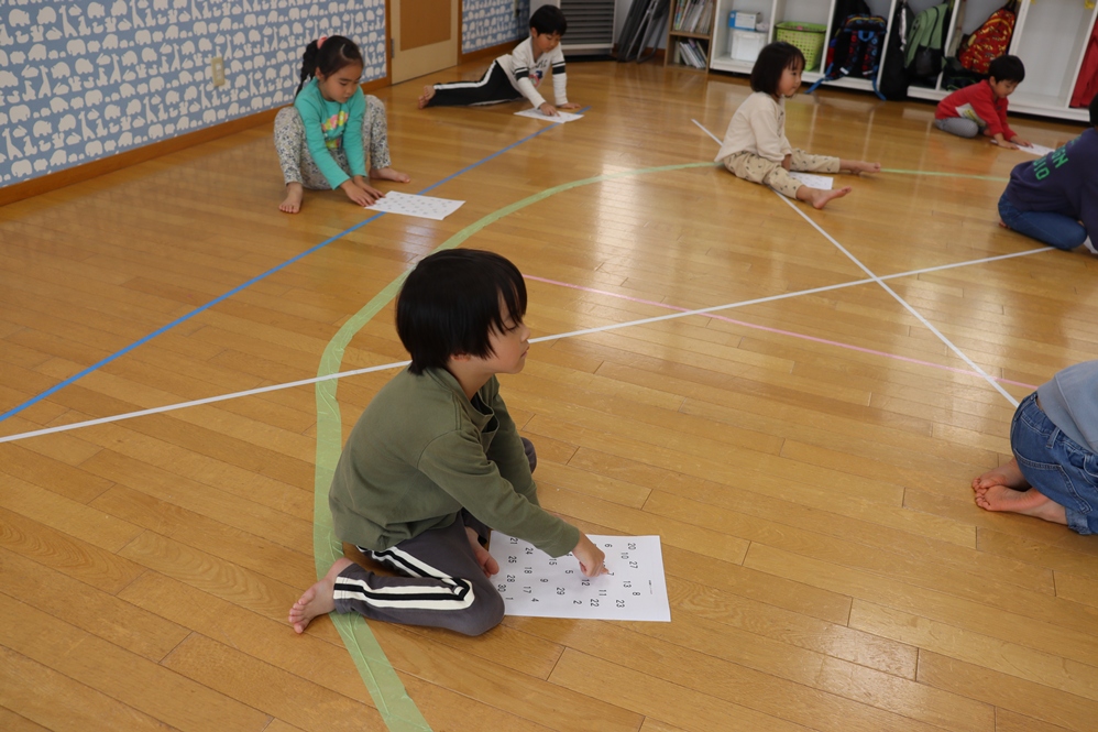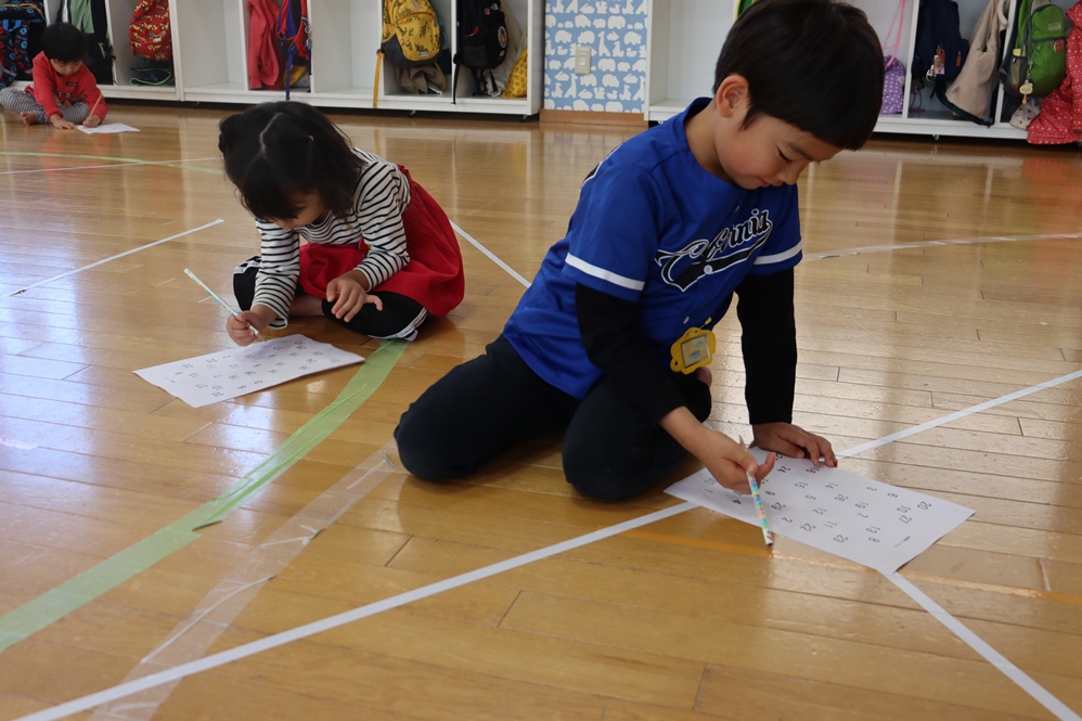 1、2、3、と順に数字に丸を付ける活動では「どこにあるの~」と紙の上の数字を苦戦しながら探しましたね🔍