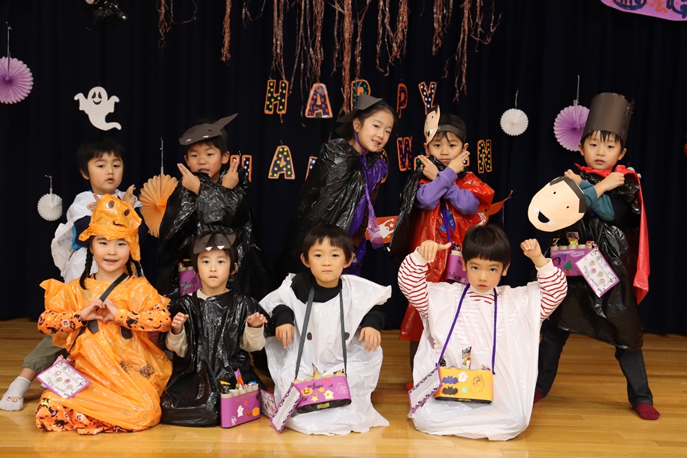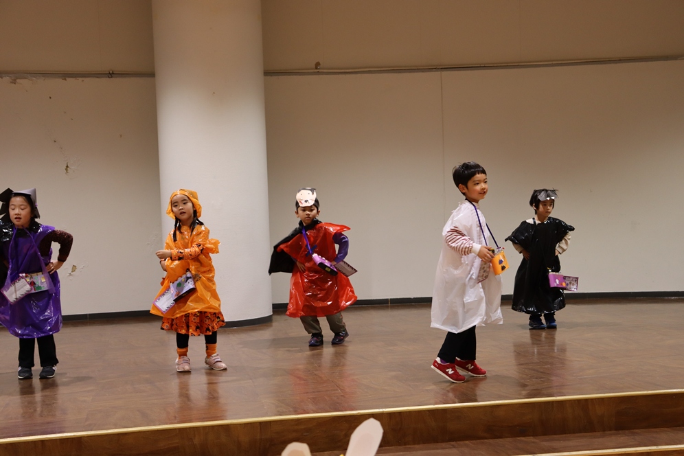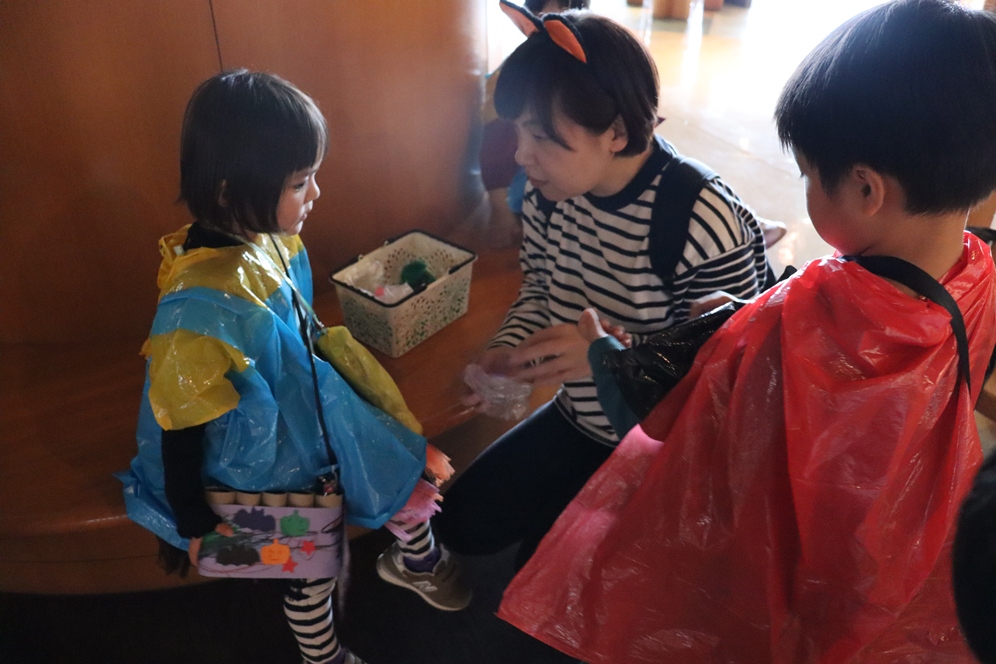 沢山練習した『トリックオアトリート』も大きな声で唱えることができおやつももらうことができました🥰