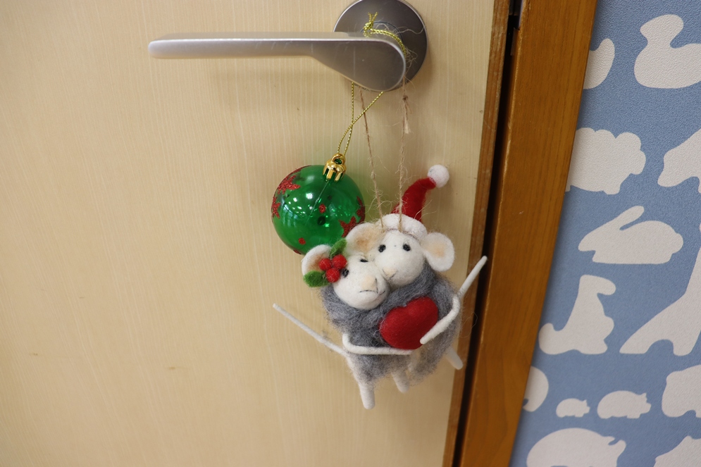 実は、ホールの中にもクリスマスツリーの飾りたちがかくれんぼしていて・・・