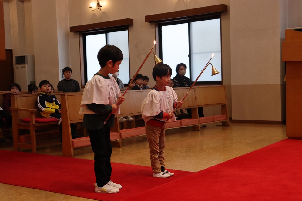 ろうそくに火を灯してもらいお礼拝が始まりましたよ