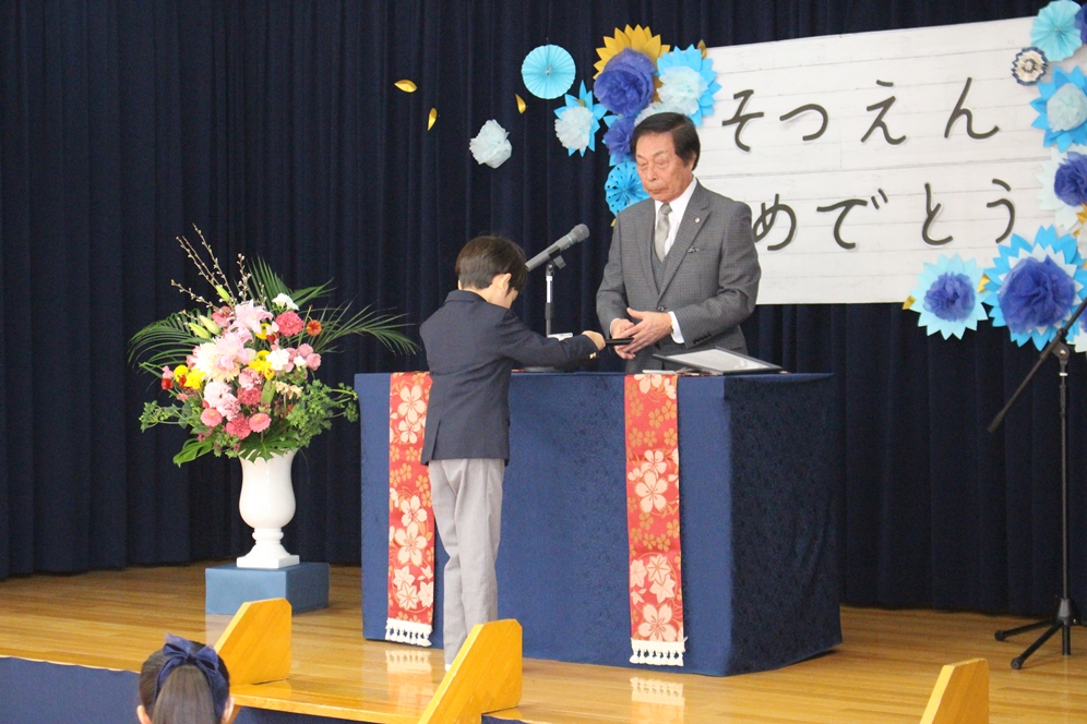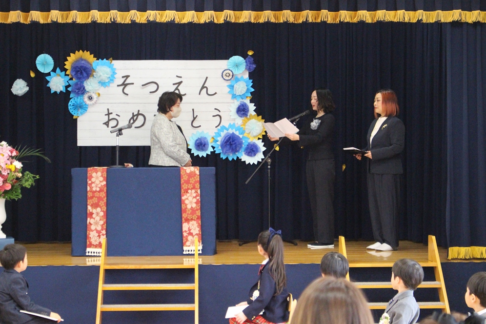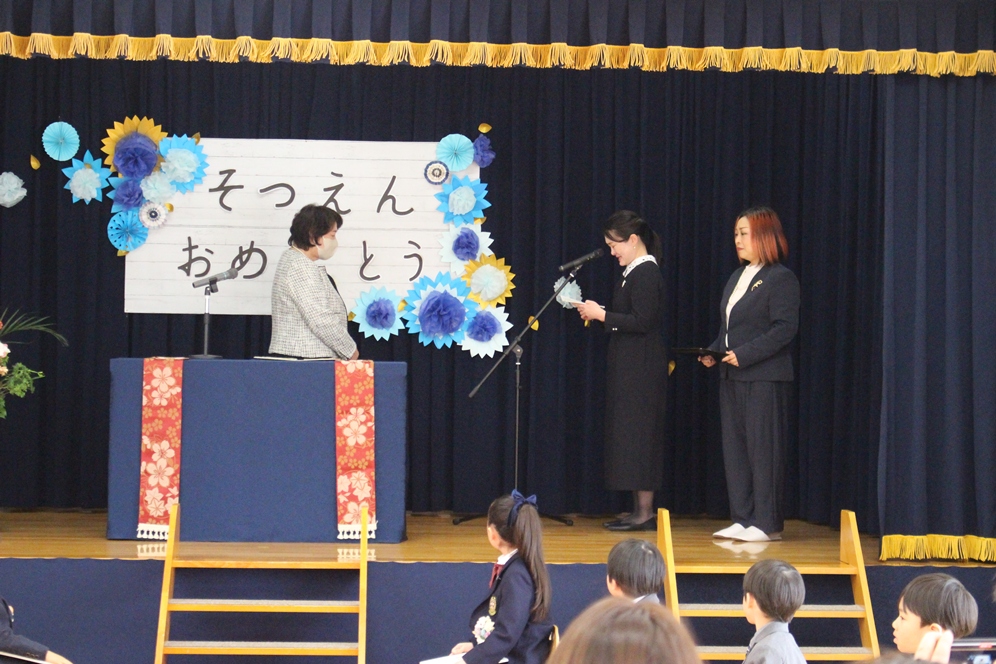 同窓会からは園章のバッジ、幼稚園からは祝菓などの記念品をお渡ししました💐