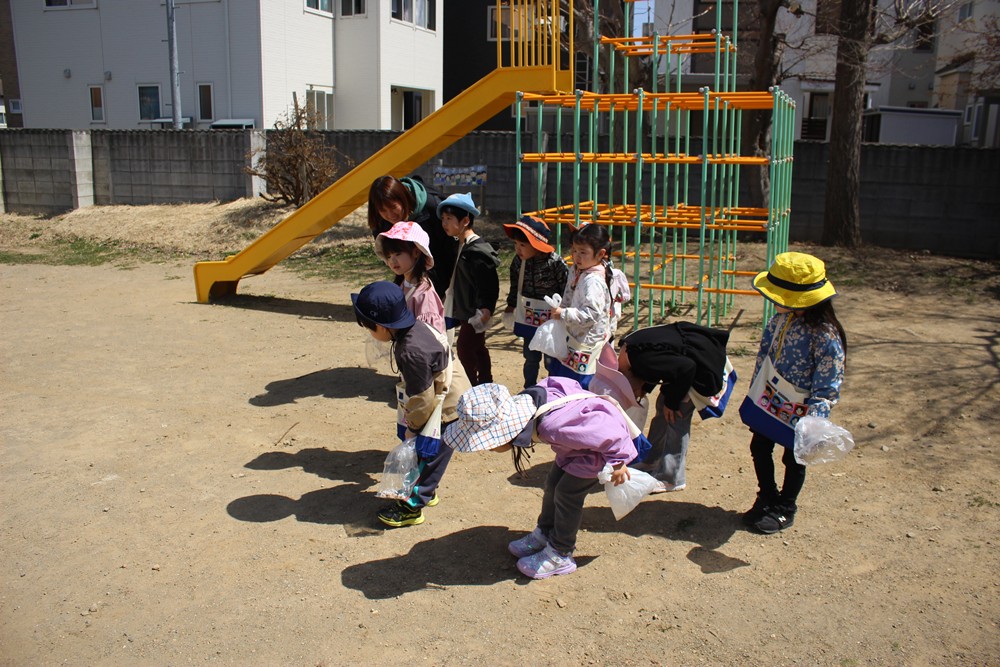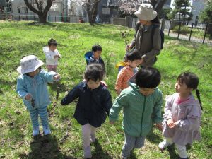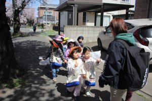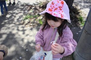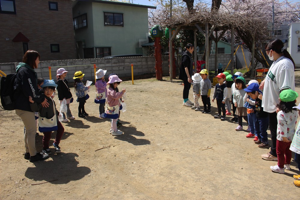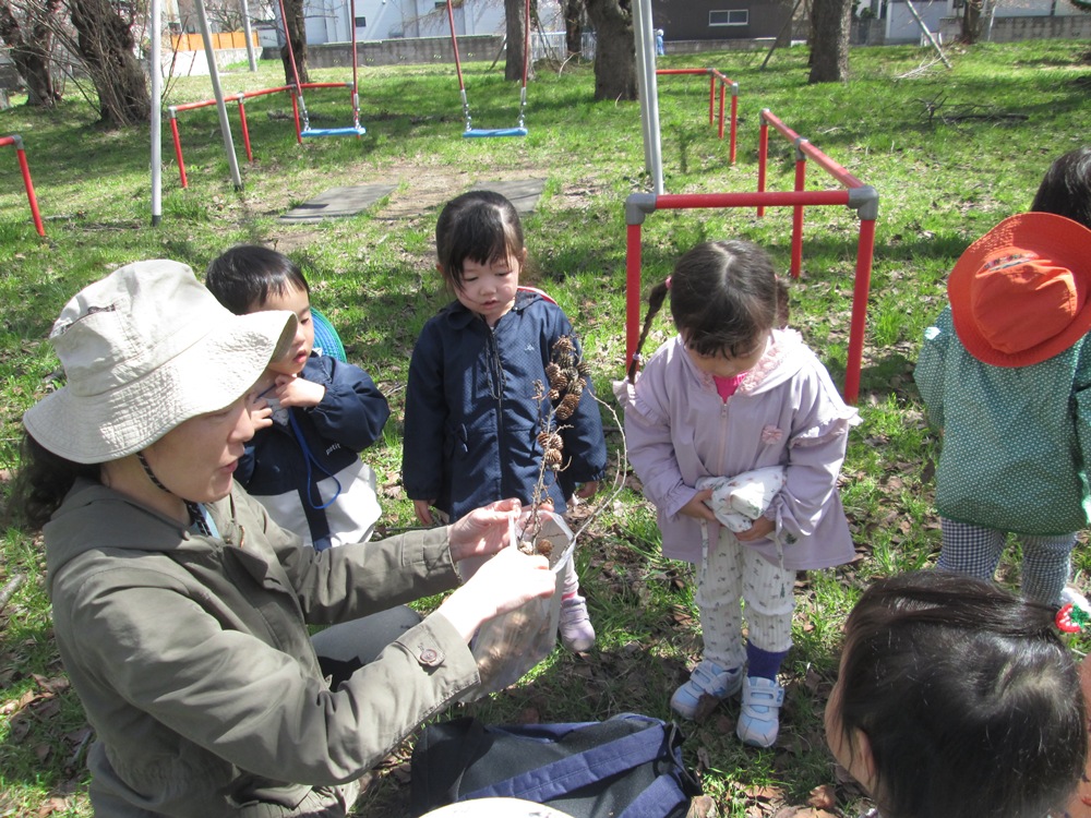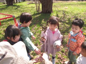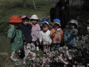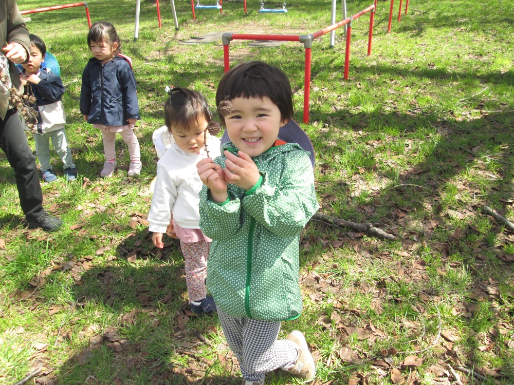花見もいいけど、まつぼっくり拾いに夢中な子どもたちでした😄