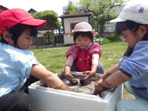 水と土をよ~く混ぜませ。