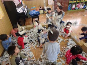 ホールでも、運動会で使った物を使って楽しんでいました。