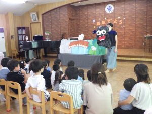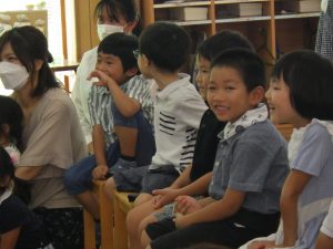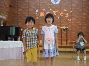 幼稚園ではみんなでお祝いのセレモニーです。