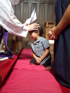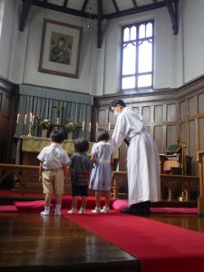 教会では司祭様に祝福をしてもらって